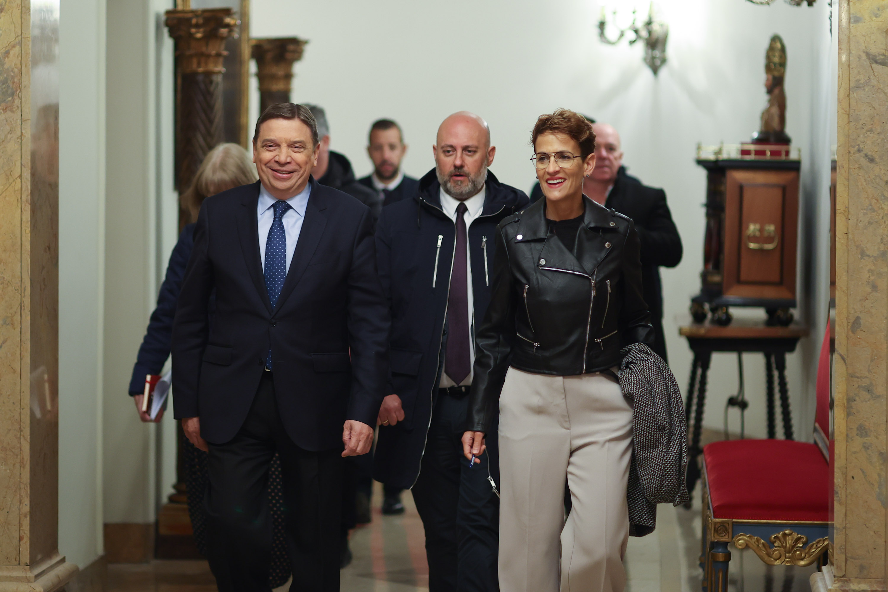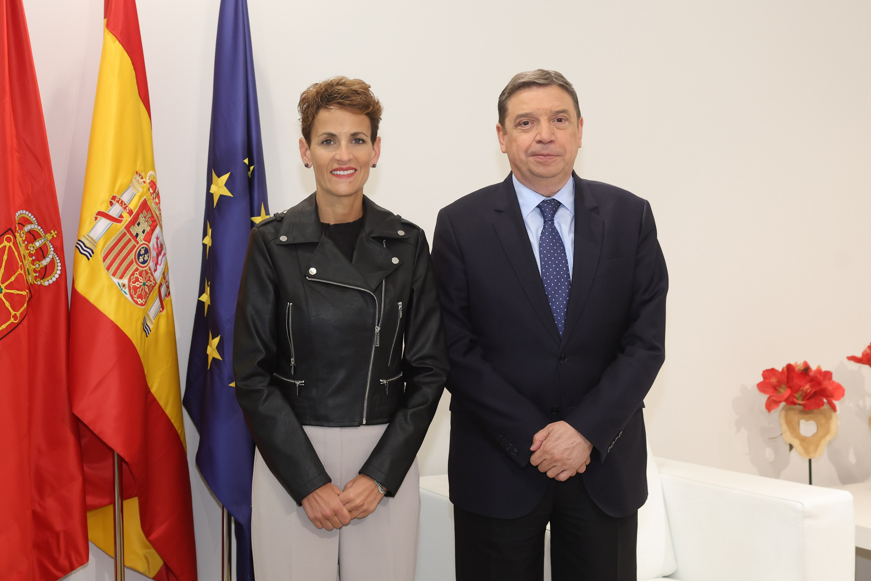 El ministro inició este jueves una visita oficial a Navarra que finaliza hoy con la reunión en la sede del Gobierno navarro, en la que el ministro y la presidenta de la comunidad han pasado revista a los asuntos agroalimentarios de mayor interés. Tras la reunión bilateral, han recibido a la nueva presidenta de Unión de Cooperativas Agroalimentarias de Navarra, Esther Burgui, la primera mujer en presidir esta entidad -constituida por 137 cooperativas agrarias y conformada por más de 18.000 socios-.