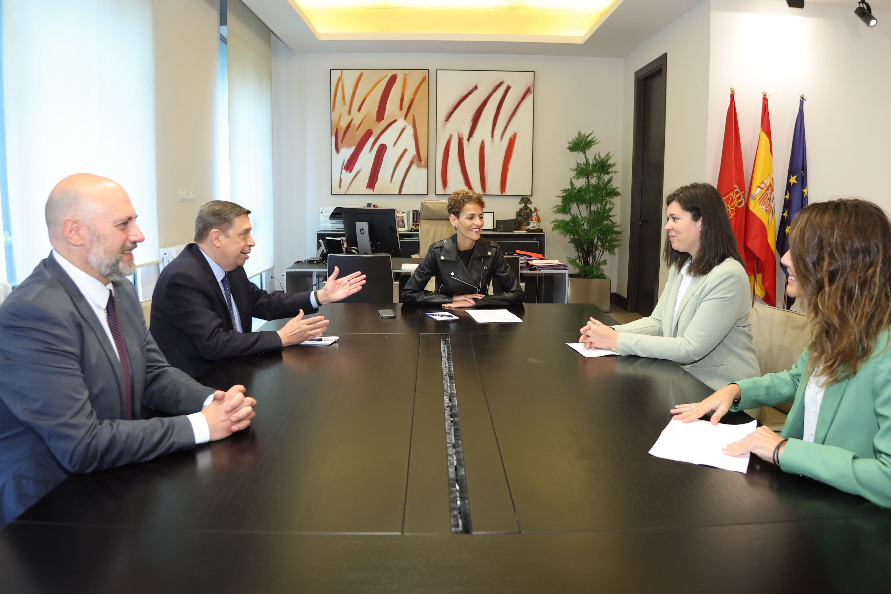 El ministro reitera el compromiso del Gobierno con el fomento de la igualdad en el sector agrario durante una reunión con la presidenta de la Comunidad Foral de Navarra, María Chivite, y la presidenta de la Unión de Cooperativas Agroalimentarias de Navarra, Esther Burgui