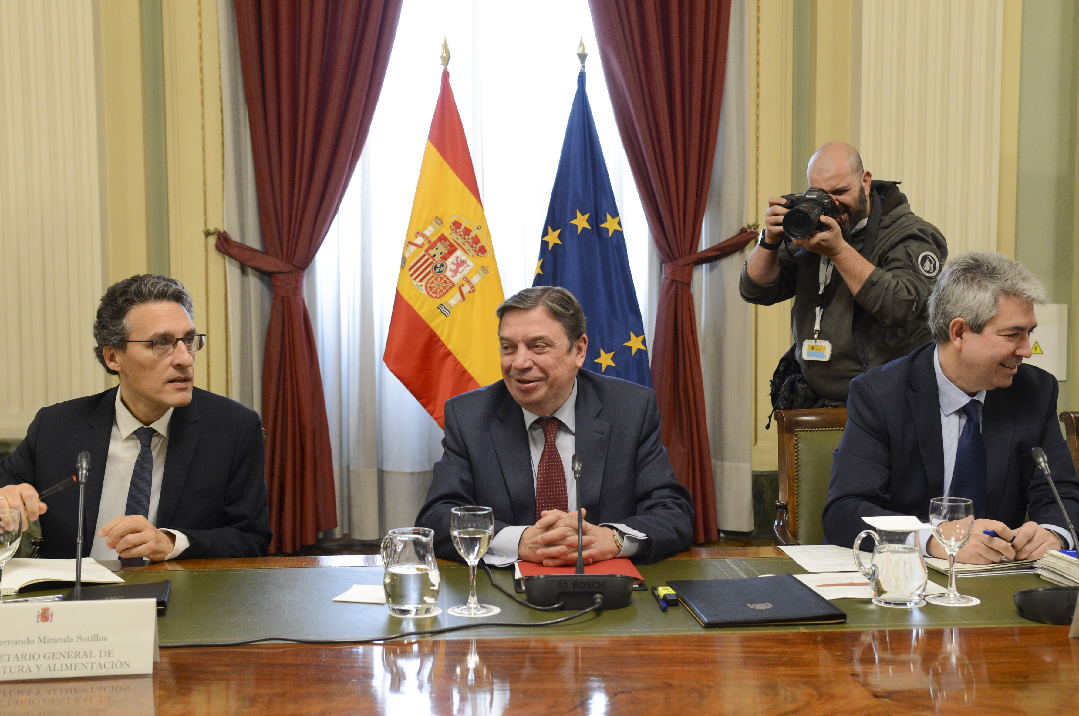 El ministro ha presidido hoy una sesión extraordinaria del pleno del Observatorio de la Cadena Alimentaria para analizar la evolución de los precios de los alimentos, una vez conocido el primer dato mensual de evolución del Índice de Precios al Consumo (IPC), tras la entrada en vigor de la reducción del IVA a determinados productos básicos de la cesta de la compra decidida por el Gobierno. La tasa interanual, que en diciembre alcanzó un techo del 15,7 %, descendió tres décimas en enero, el primer mes de aplicación. En este foro están representados todos los agentes que integran la cadena de valor alimentaria, desde la producción primaria hasta la distribución, además de los consumidores, industria, comunidades autónomas y los distintos órganos de la Administración General del Estado con competencias en la materia.