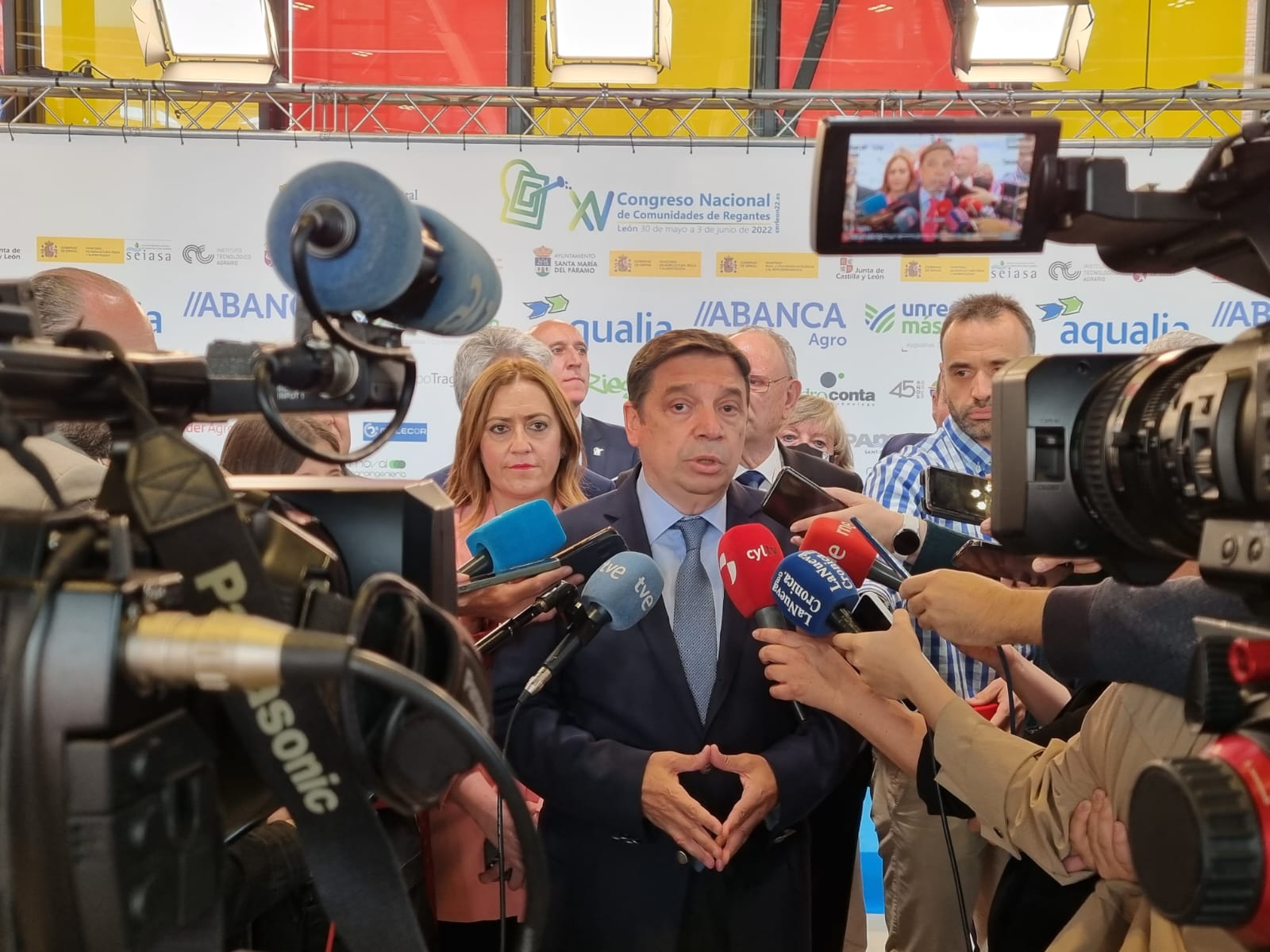 El ministro ha clausurado, hoy, el XV Congreso Nacional de Comunidades de Regantes que ha tenido lugar estos días en León, organizado por la Federación Nacional de Regantes de España (Fenacore) y por el Sindicato Central del Embalse de los Barrios de Luna, que “ha reunido a la gran familia del regadío español”.