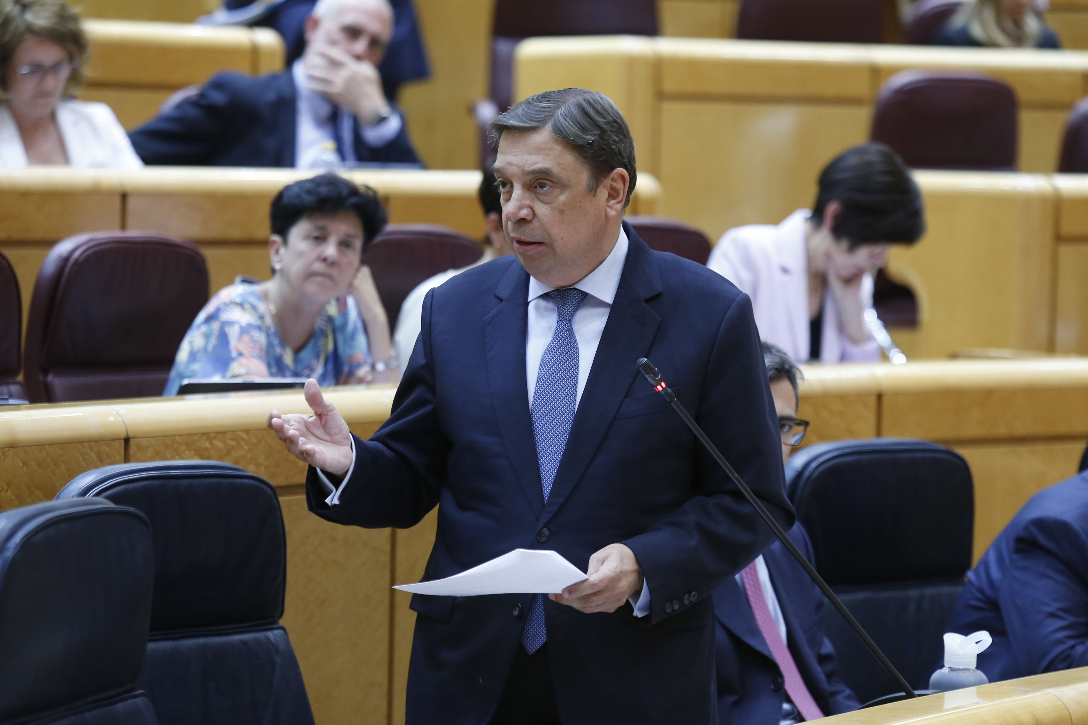 Luis Planas ha respondido hoy en el Senado a una interpelación sobre el impacto que tendrá el Plan Estratégico de la PAC en el sector agrario de Andalucía, donde ha asegurado que esta política comunitaria busca potenciar una agricultura rentable y sostenible, con la mayor equidad posible en la distribución de los fondos.