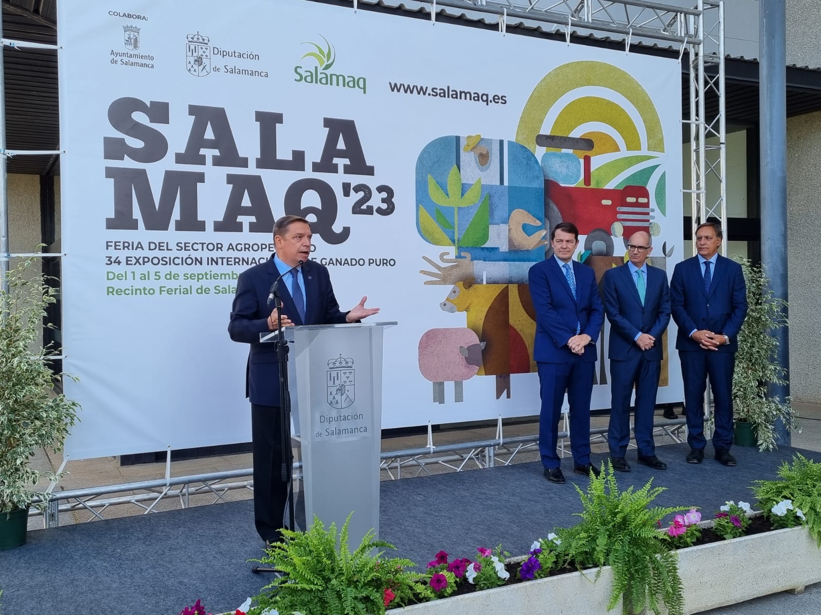 Luis Planas ha inaugurado hoy “Salamaq 2023. Feria del Sector Agropecuario y 34 Exposición Internacional de Ganado Puro”, punto de encuentro para los profesionales del sector agropecuario y de las industrias vinculadas que se ha convertido en un referente de actualidad en cuestiones como la sanidad, el bienestar animal, la cría de animales o la maquinaria agrícola. Para el ministro, Salamaq es un referente comercial y una magnífica exhibición de la importancia del sector ganadero en España; estratégico para la economía española y clave para el desarrollo del medio rural.