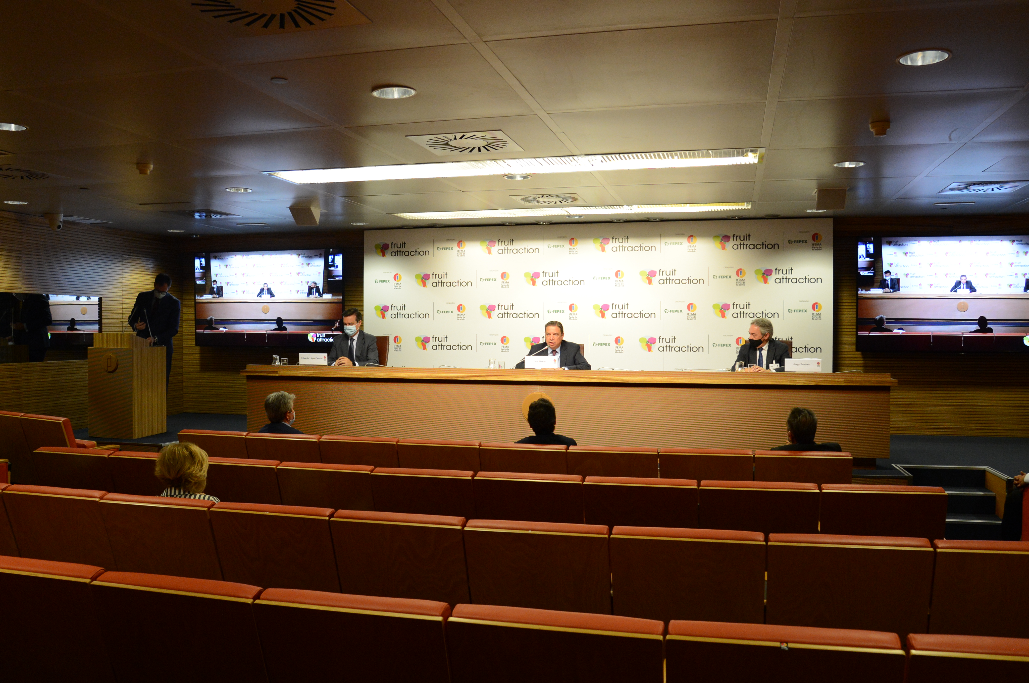 El ministro de Agricultura, Pesca y Alimentación, Luis Planas, ha inaugurado hoy la Feria Fruit Attraction 2020, que en esta edición se celebra en formato telepresencial, algo que para el ministro demuestra cómo el sector hortofrutícola español responde a los retos a los que nos enfrentamos actualmente, como ya hizo durante el confinamiento al garantizar el suministro de frutas y verduras frescas a la población.