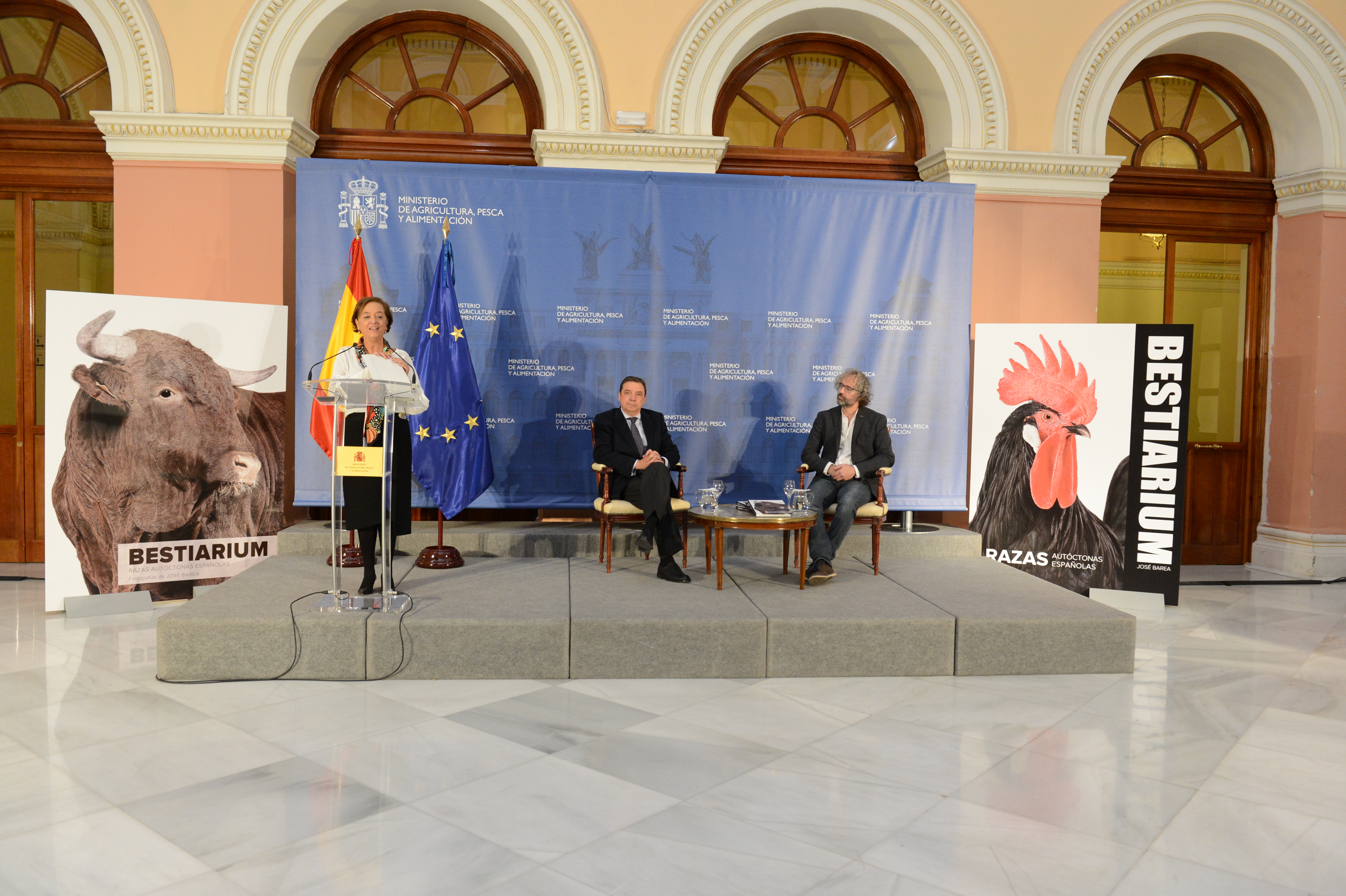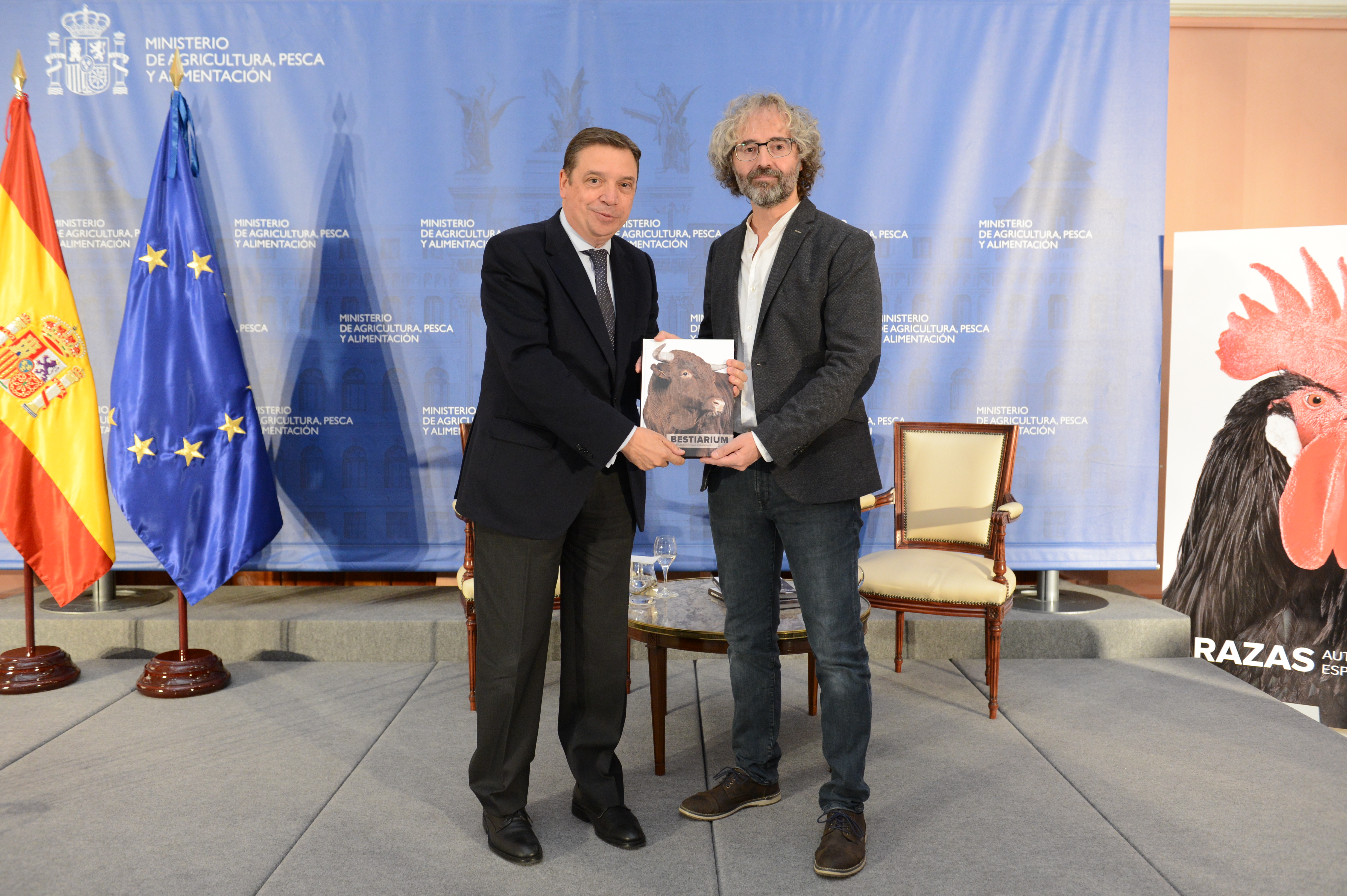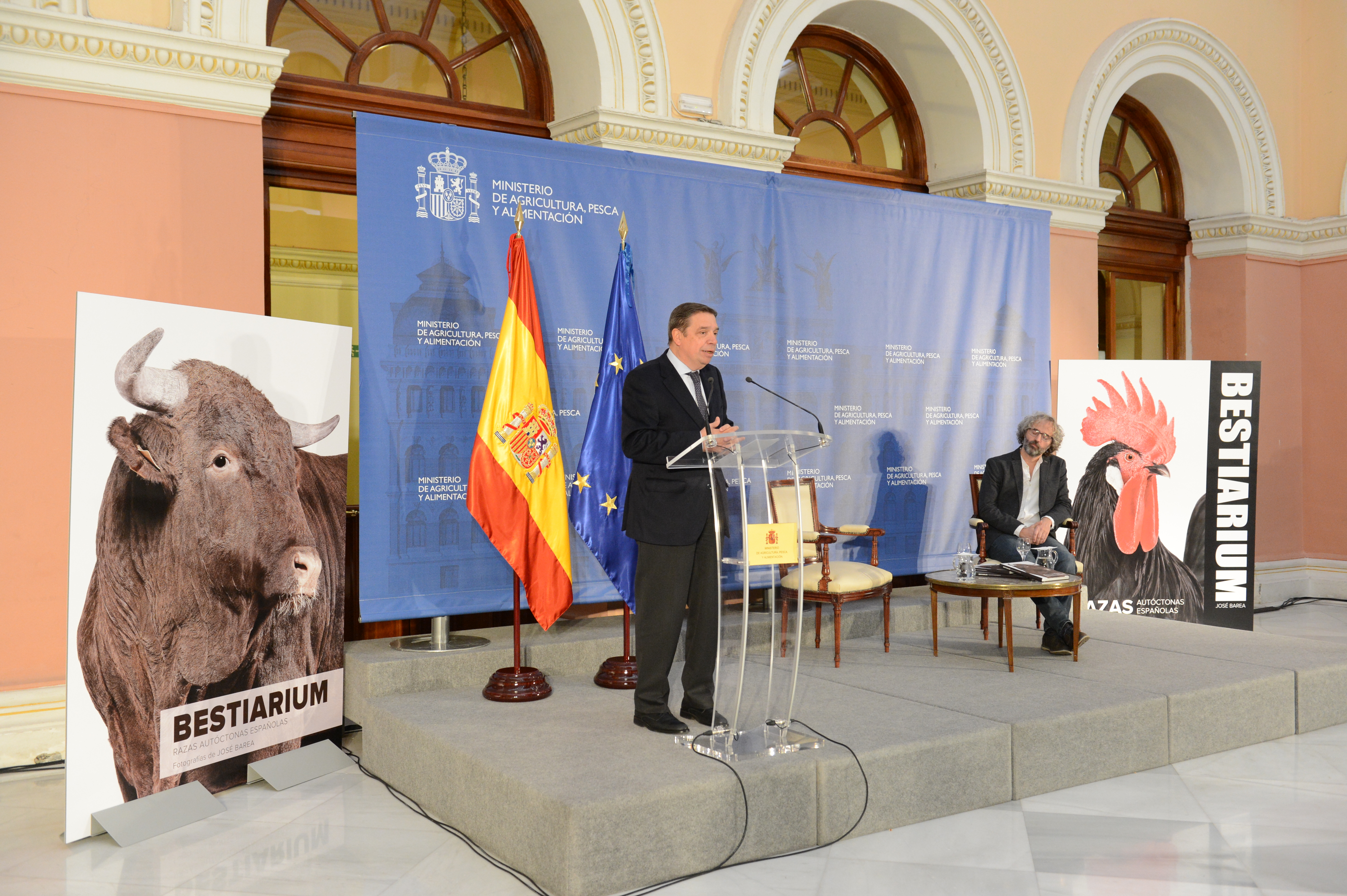 El ministro de Agricultura, Pesca y Alimentación en funciones, Luis Planas, ha participado hoy, en la sede del Ministerio, en la presentación del libro Bestiarium de Razas Autóctonas Españolas, del fotógrafo José Barea, una publicación que incluye “excelentes fotografías de una gran expresividad, que demuestran que detrás de cada raza autóctona hay una historia que es 100% nuestra”.