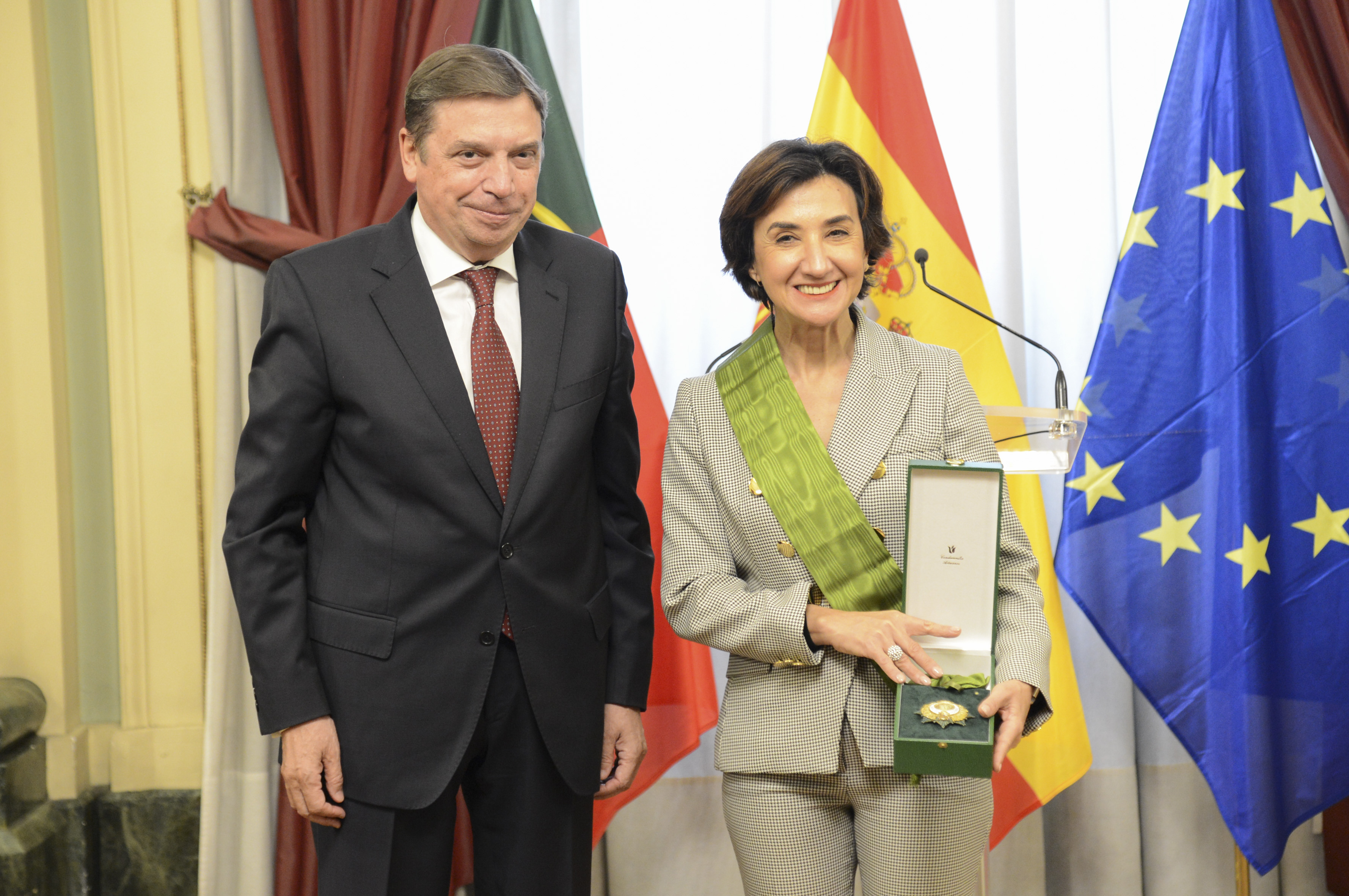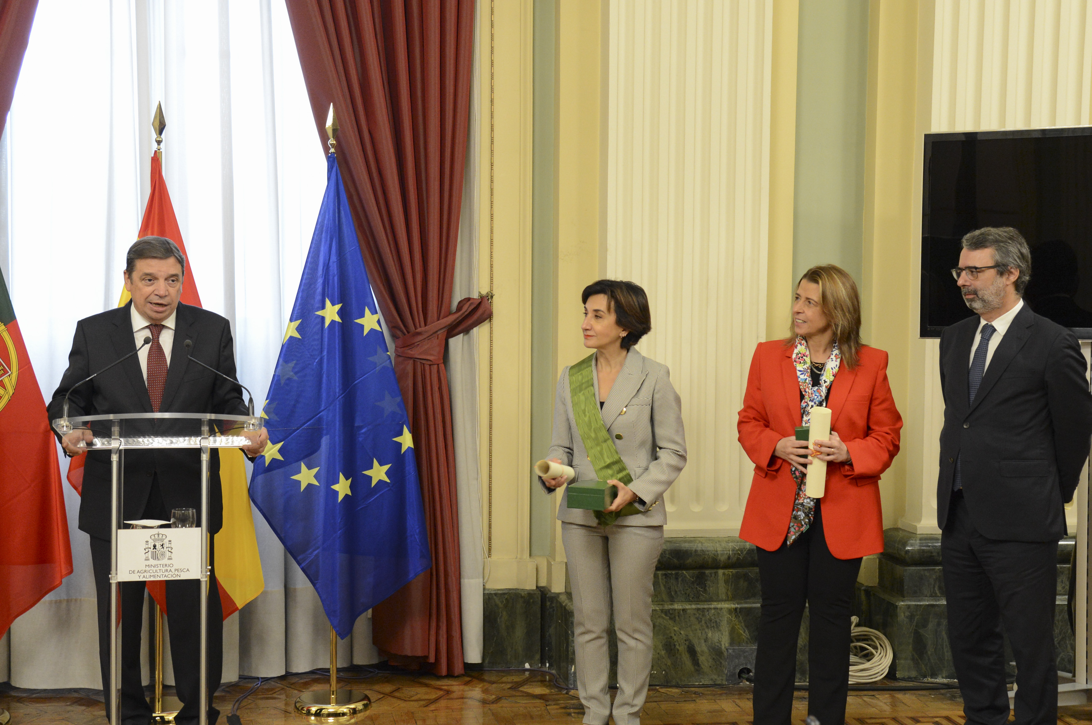 Tras la reunión, Luis Planas ha impuesto a la ministra María do Céu Antunes la Gran Cruz de la Orden Civil del Mérito Agrario, Pesquero y Alimentario. Por su parte, la secretaria de Estado de Pesca de Portugal, Teresa Coelho, ha recibido la Encomienda de número al mérito pesquero; y el director general de la Oficina de Planificación, Políticas y Administración General, Eduardo Diniz, la Encomienda de número al mérito agrario.