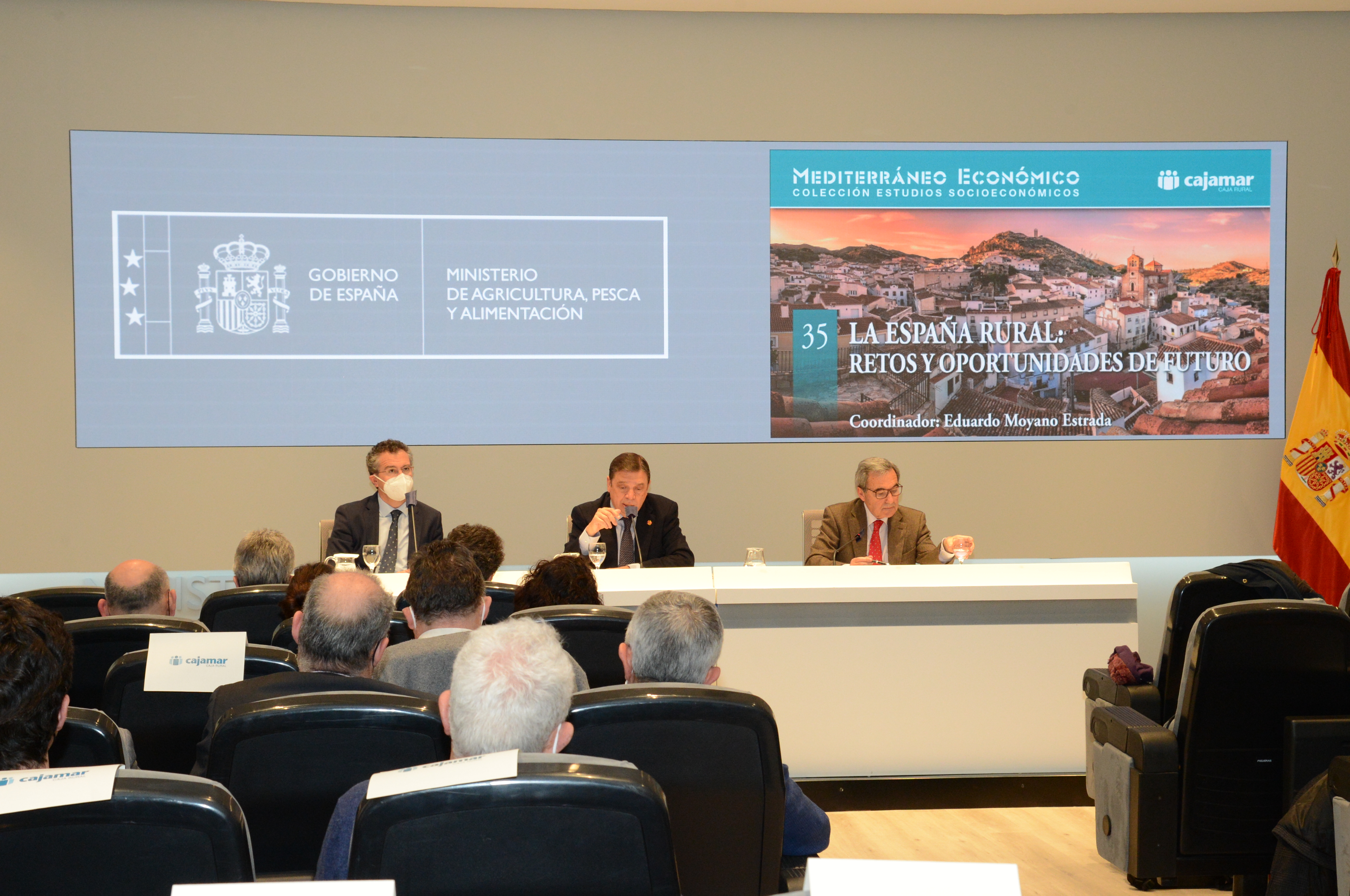 El titular de Agricultura, Pesca y Alimentación ha manifestado estas ideas en el transcurso de la presentación de la monografía “La España rural. Retos y oportunidades de futuro”, un nuevo número de la colección Mediterráneo Económico que edita Cajamar y que ha coordinado el investigador Eduardo Moyano.