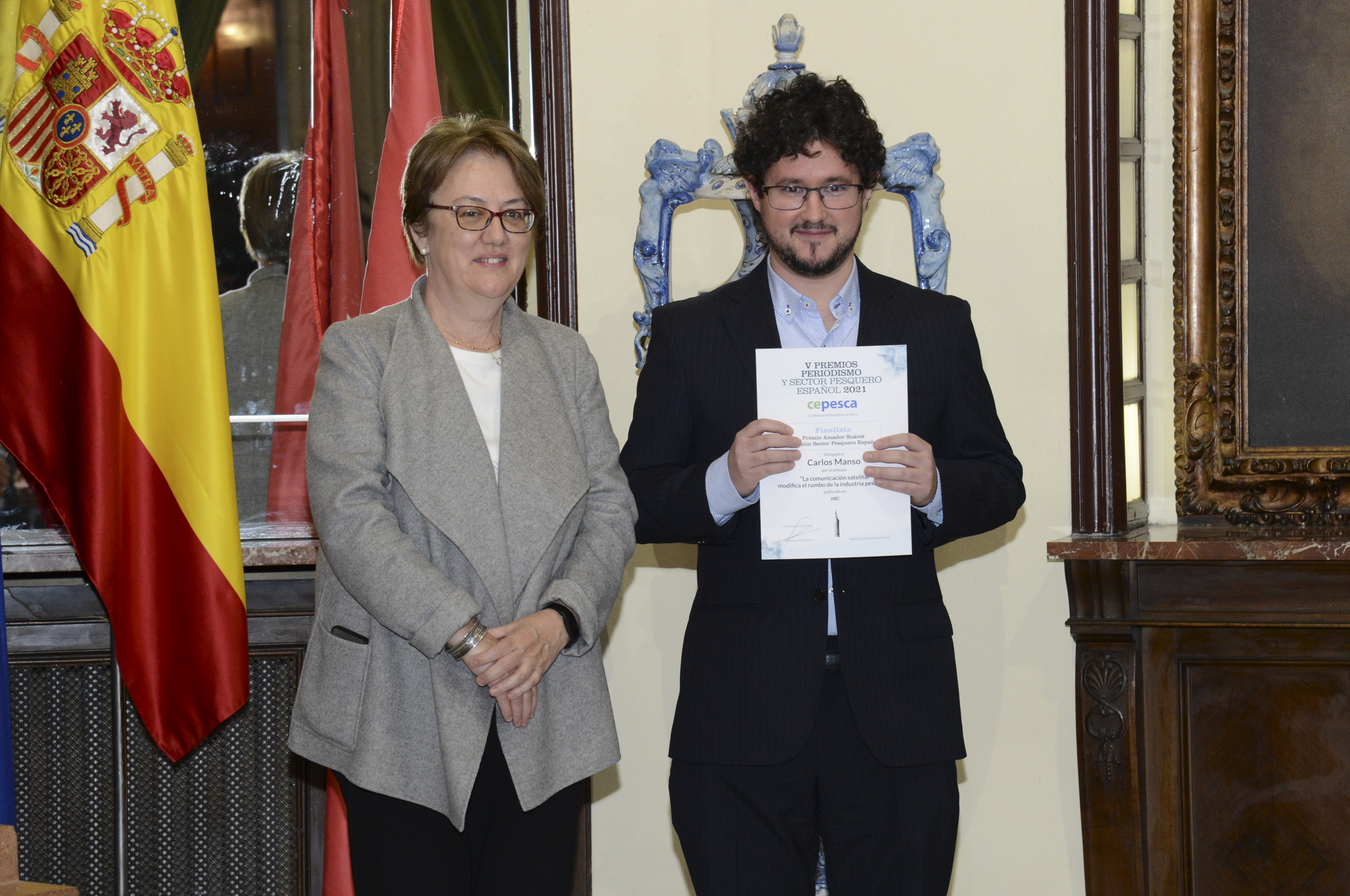 Los periodistas premiados en esta edición han sido Mercedes Sala (Efeagro), al mejor artículo de difusión del sector pesquero; y Jairo Marcos y Ángeles Fernández (esGlobal), al mejor artículo de difusión sobre sostenibilidad y medio ambiente en la pesca.   En medios de comunicación han sido premiados Faro de Vigo, a la mejor labor de difusión del sector pesquero y El Economista: Agua y Medio Ambiente, por la difusión de la sostenibilidad y medio ambiente en la pesca. Por último, Martina Oubiña ha recibido el premio a la mejor fotografía por una instantánea publicada en La Voz de Galicia.