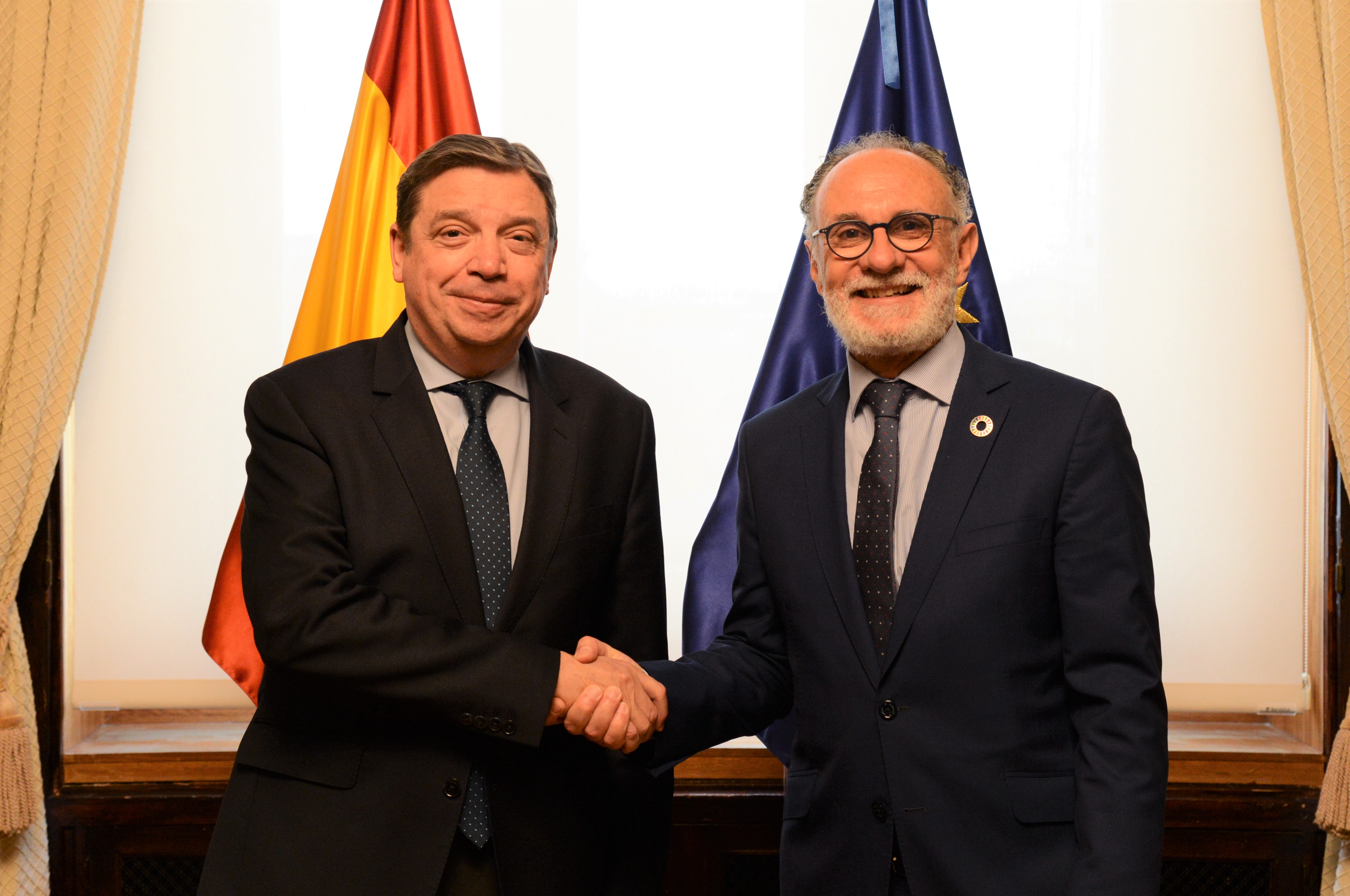 El ministro de Agricultura, Pesca y Alimentación, Luis Planas, se ha reunido hoy, en la sede del ministerio, con el presidente de Mercasa, José Ramón Sempere.