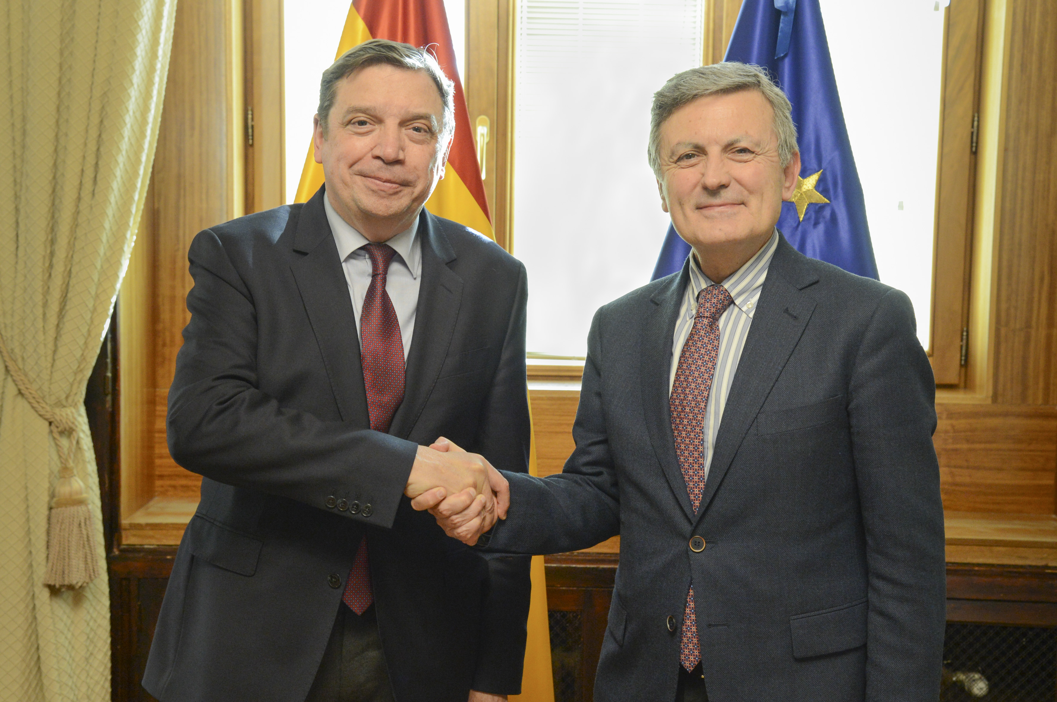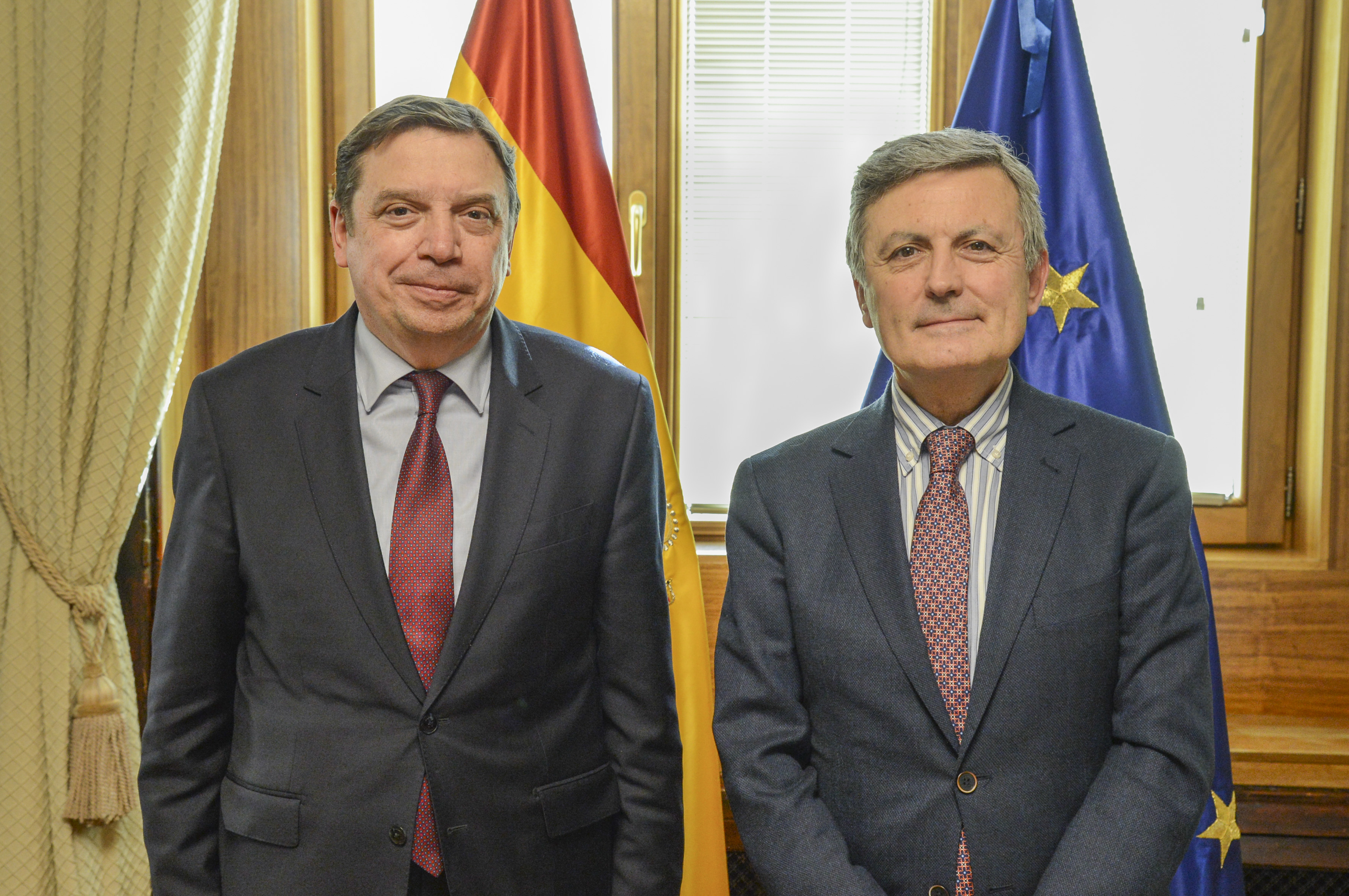 El ministro de Agricultura, Pesca y Alimentación, Luis Planas, se ha reunido hoy, en la sede del ministerio, con el presidente de Paradores de Turismo de España, Pedro Saura, con quien ha analizado nuevas vías de colaboración para impulsar la riqueza gastronómica española.