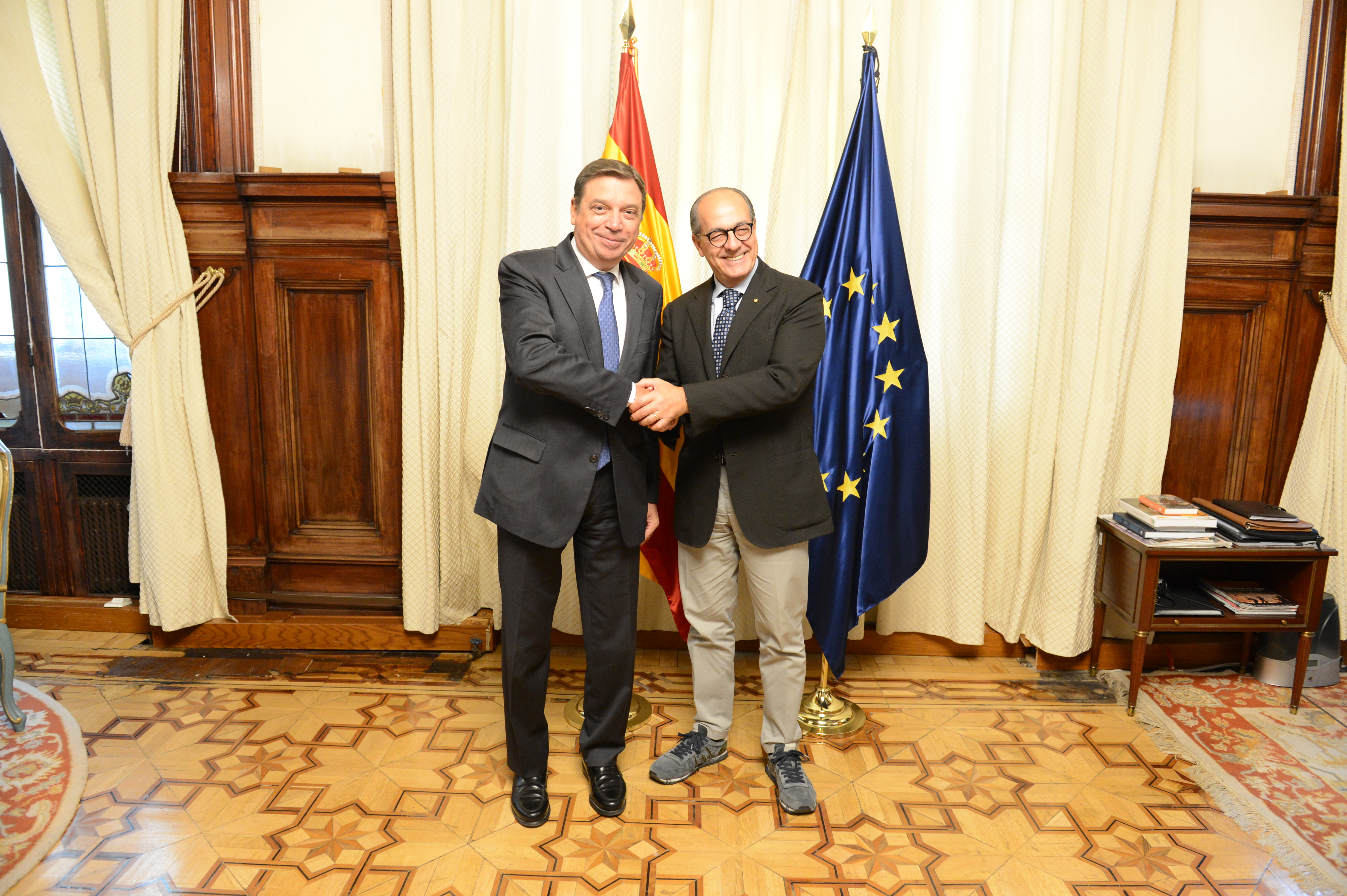 El ministro ha explicado a Paolo de Castro que España defenderá una verdadera política común, con objetivos y un sistema de gobernanza común en el marco de la Unión Europea, y un procedimiento de aprobación transparente para los planes estratégicos.