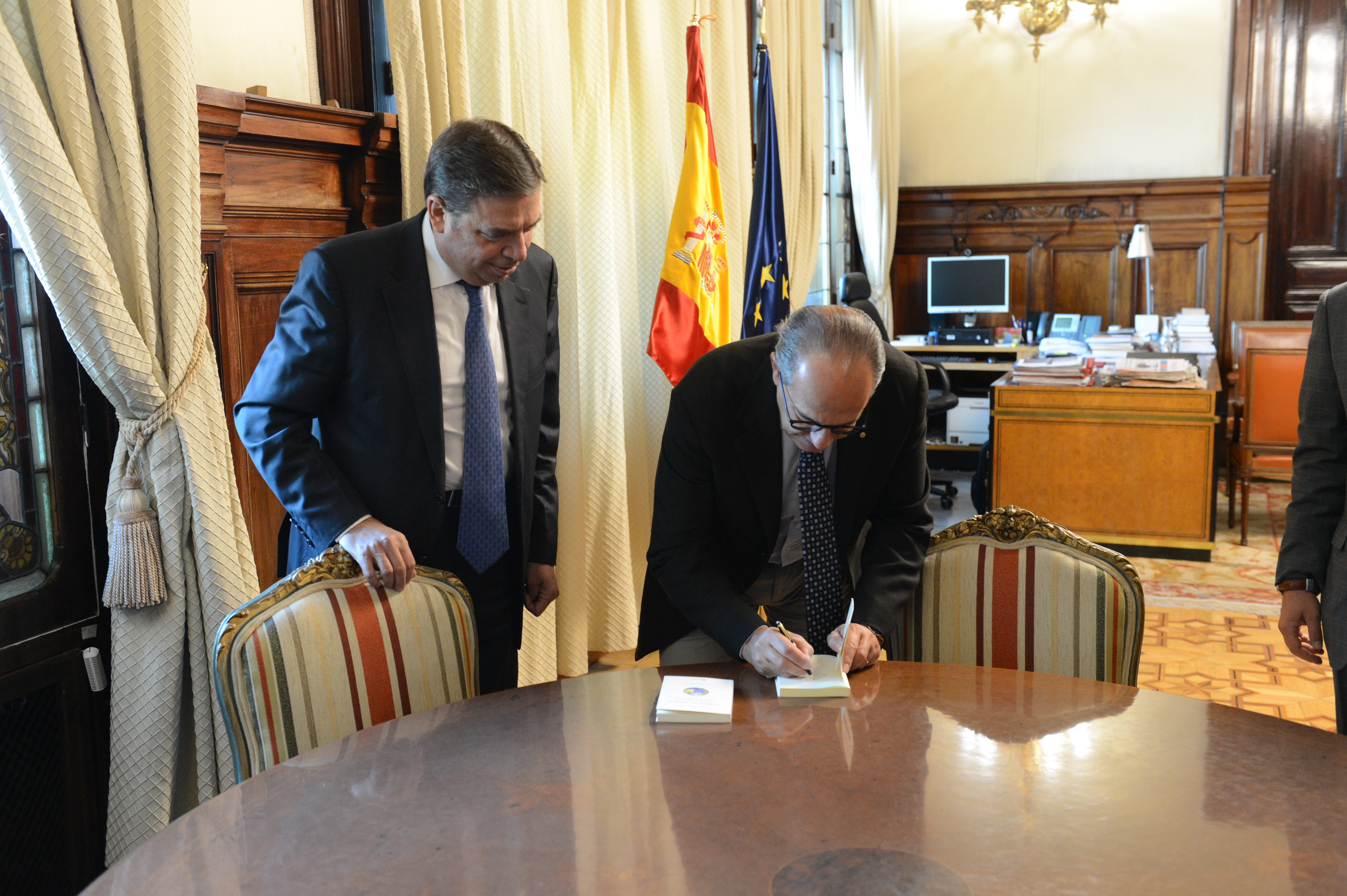 El ministro de Agricultura, Pesca y Alimentación, Luis Planas, se ha reunido hoy, en la sede del Departamento, con el vicepresidente de la Comisión de Agricultura y Desarrollo Rural del Parlamento Europeo, Paolo de Castro, con quien han abordado los desafíos que plantea la futura Política Agrícola Común (PAC) y la propuesta de Directiva sobre Prácticas Comerciales Desleales.