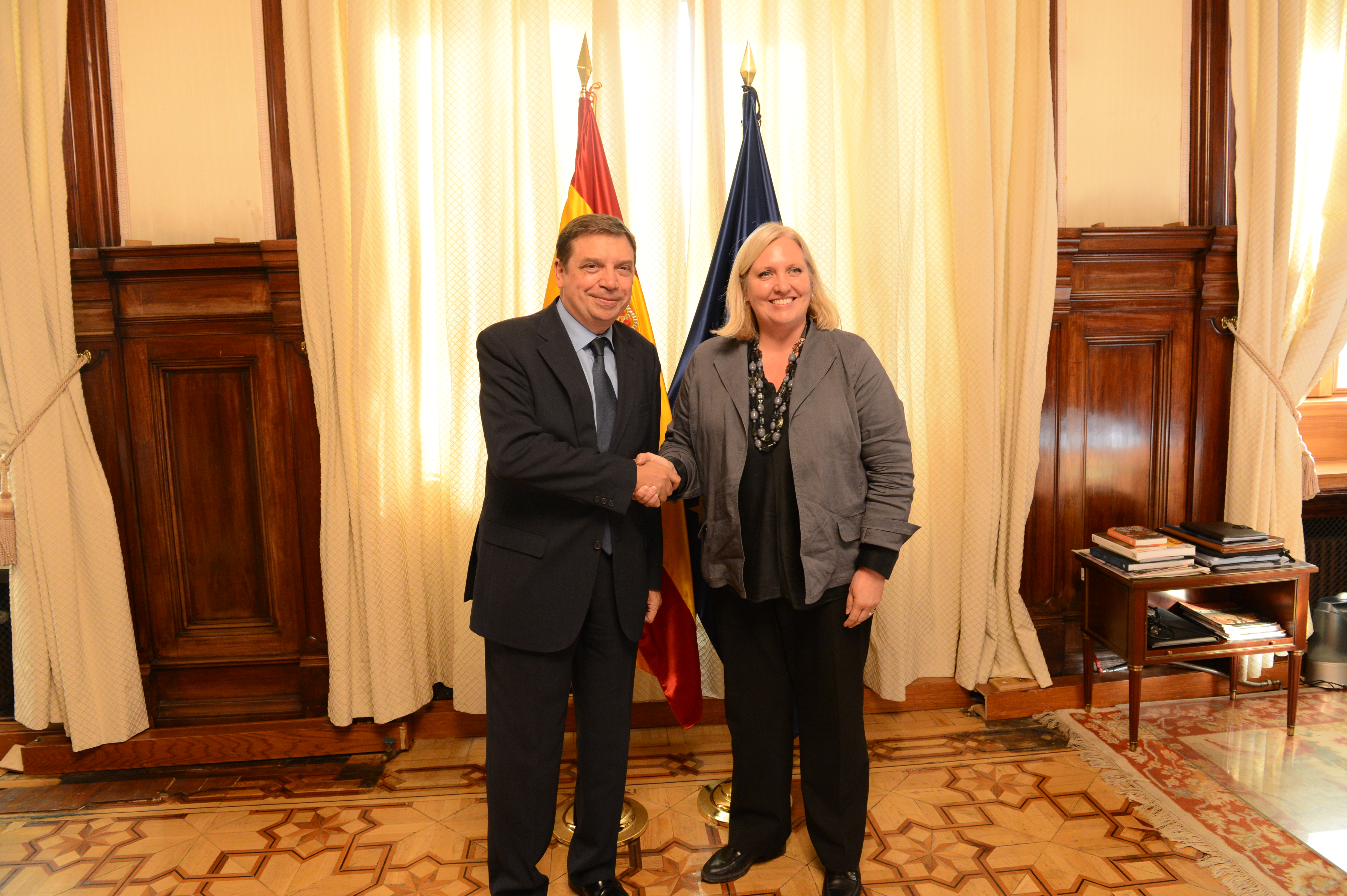 El ministro de Agricultura, Pesca y Alimentación, Luis Planas, se ha reunido hoy, en la sede del Ministerio, con la directora de la Oficina en Madrid del Programa Mundial de Alimentos (PMA) de Naciones Unidas, Jennifer Nyberg.