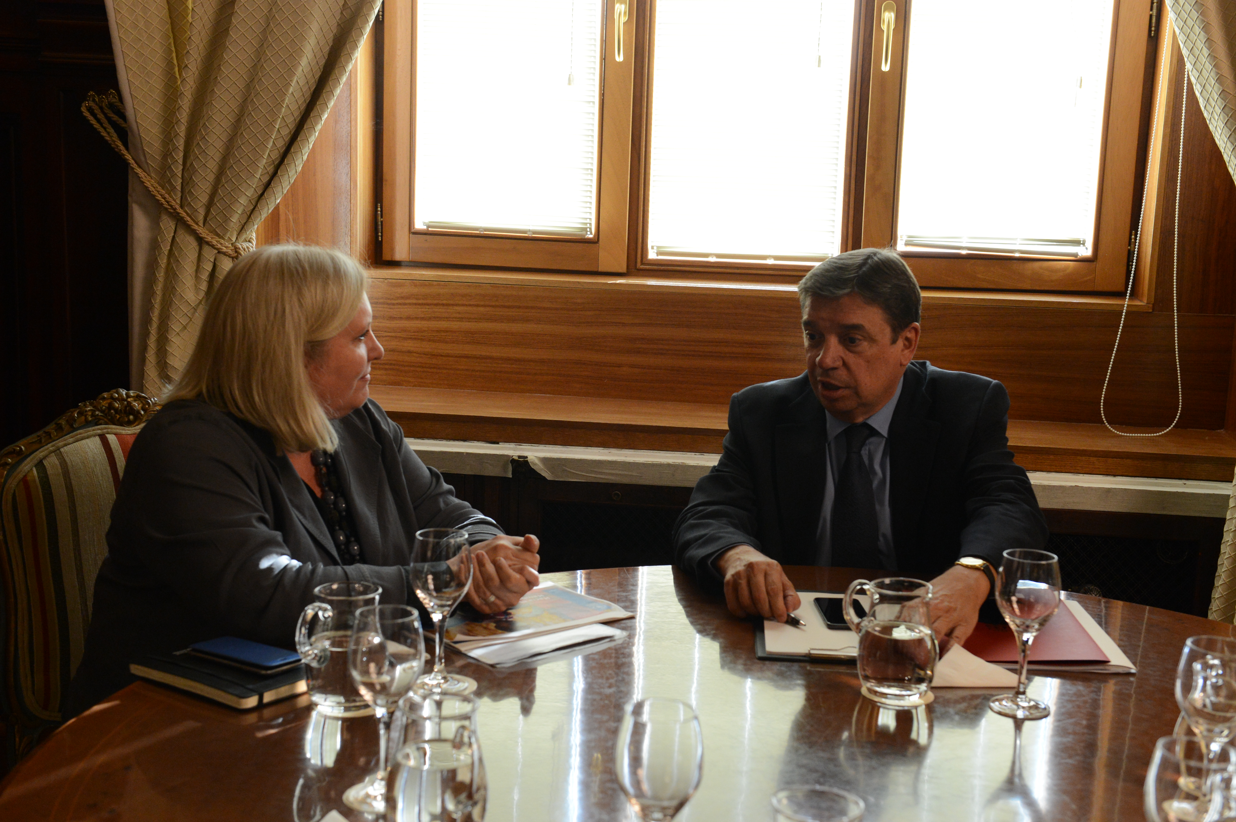 El ministro felicita a Jennifer Nyberg por las acciones del Programa encaminadas a conseguir el Objetivo de Desarrollo Sostenible 2 (hambre cero)