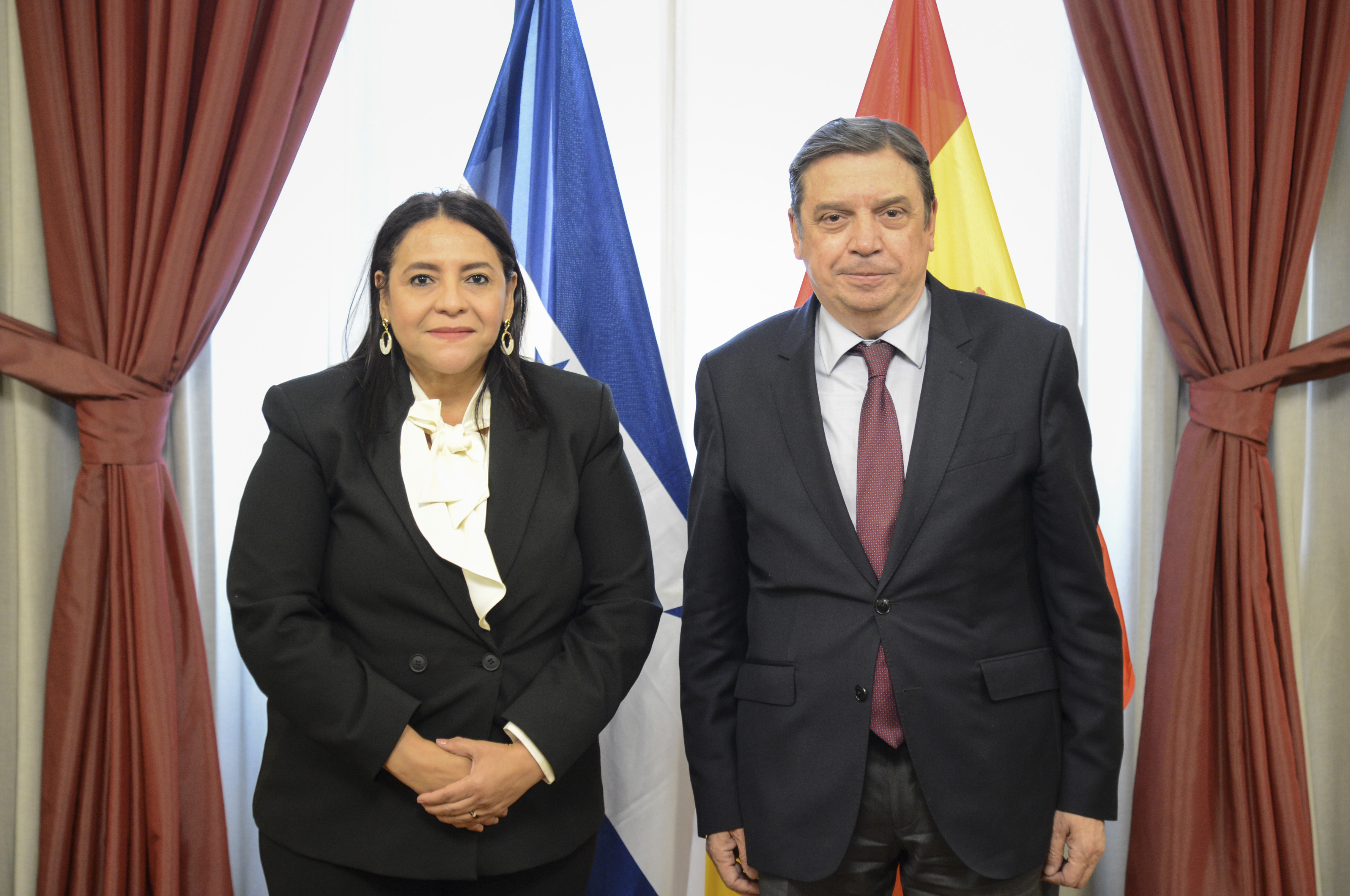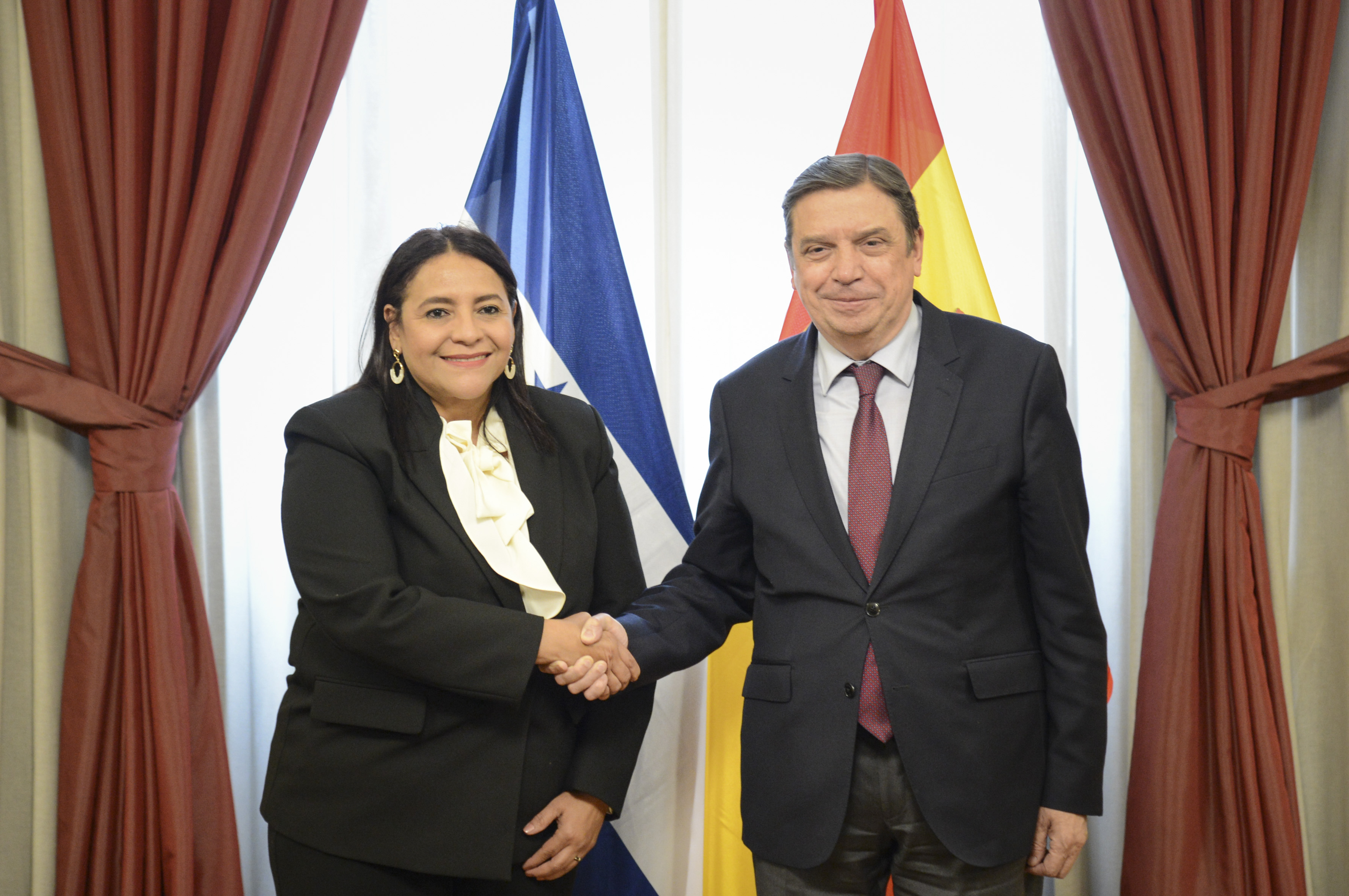 El ministro de Agricultura, Pesca y Alimentación, Luis Planas, se ha reunido hoy con la ministra de Agricultura y Ganadería de la República de Honduras, Laura Suazo, con quien ha repasado los principales asuntos de interés común en materia agroalimentaria. El ministro Planas ha mostrado la disposición de su departamento para colaborar con Honduras en asuntos como el uso racional del agua, el impulso del asociacionismo agrario, la trasparencia y equilibrio de la cadena alimentaria o los seguros agrarios, materias en las que España tiene una acreditada experiencia.