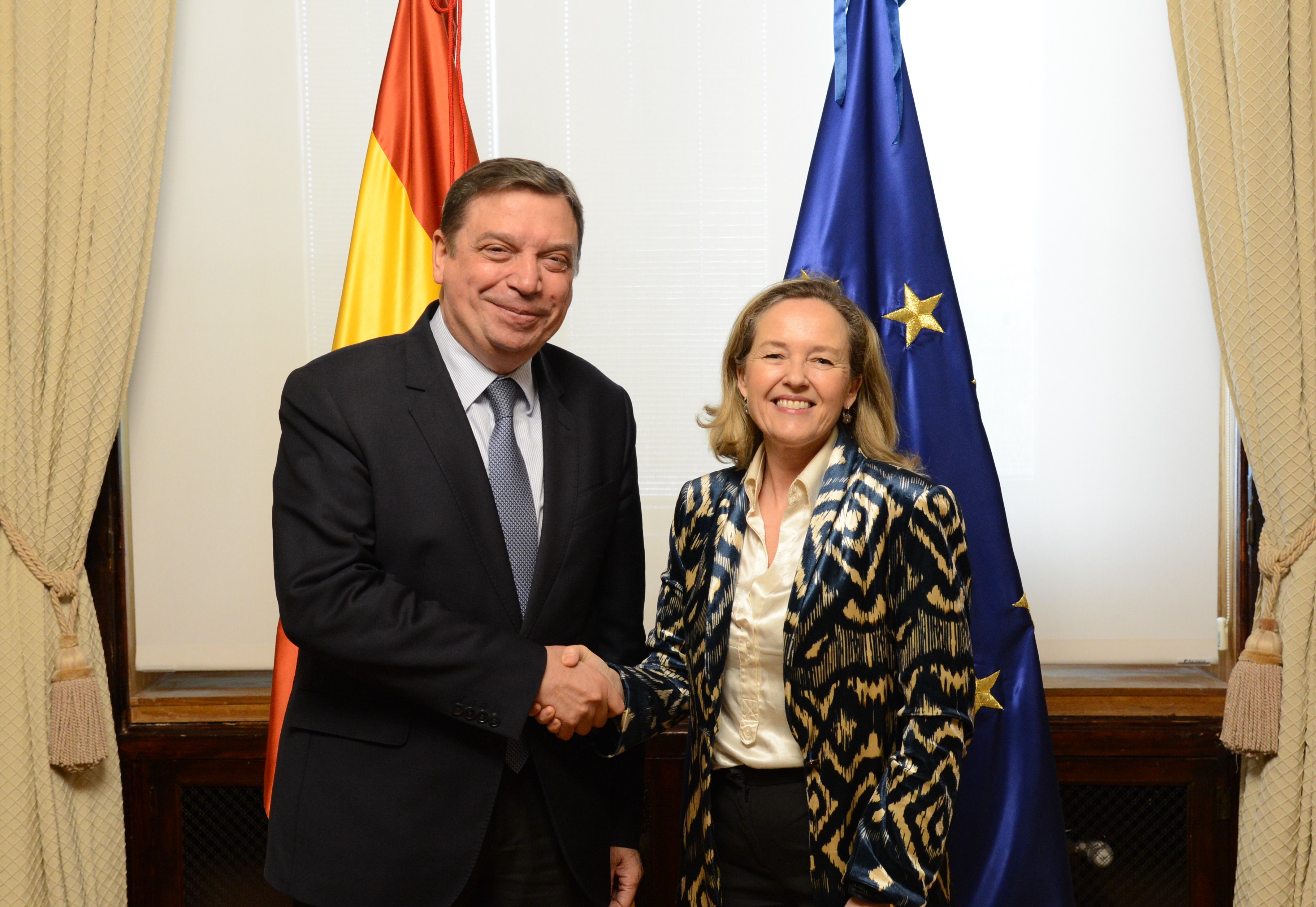 El ministro de Agricultura, Pesca y Alimentación, Luis Planas, se ha reunido hoy con la presidenta del Banco Europeo de Inversiones (BEI), Nadia Calviño, con quien ha analizado diversos aspectos relacionados con los apoyos y la financiación al sector agroalimentario.
