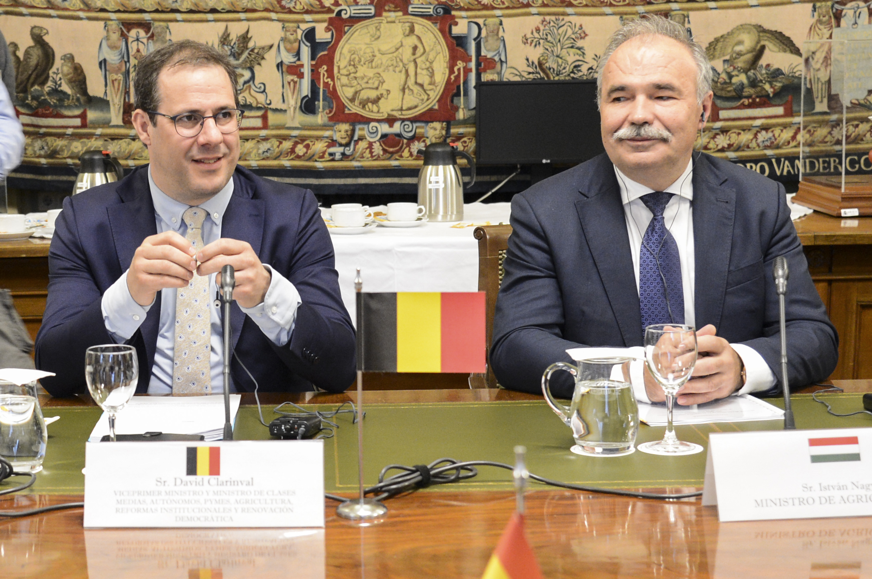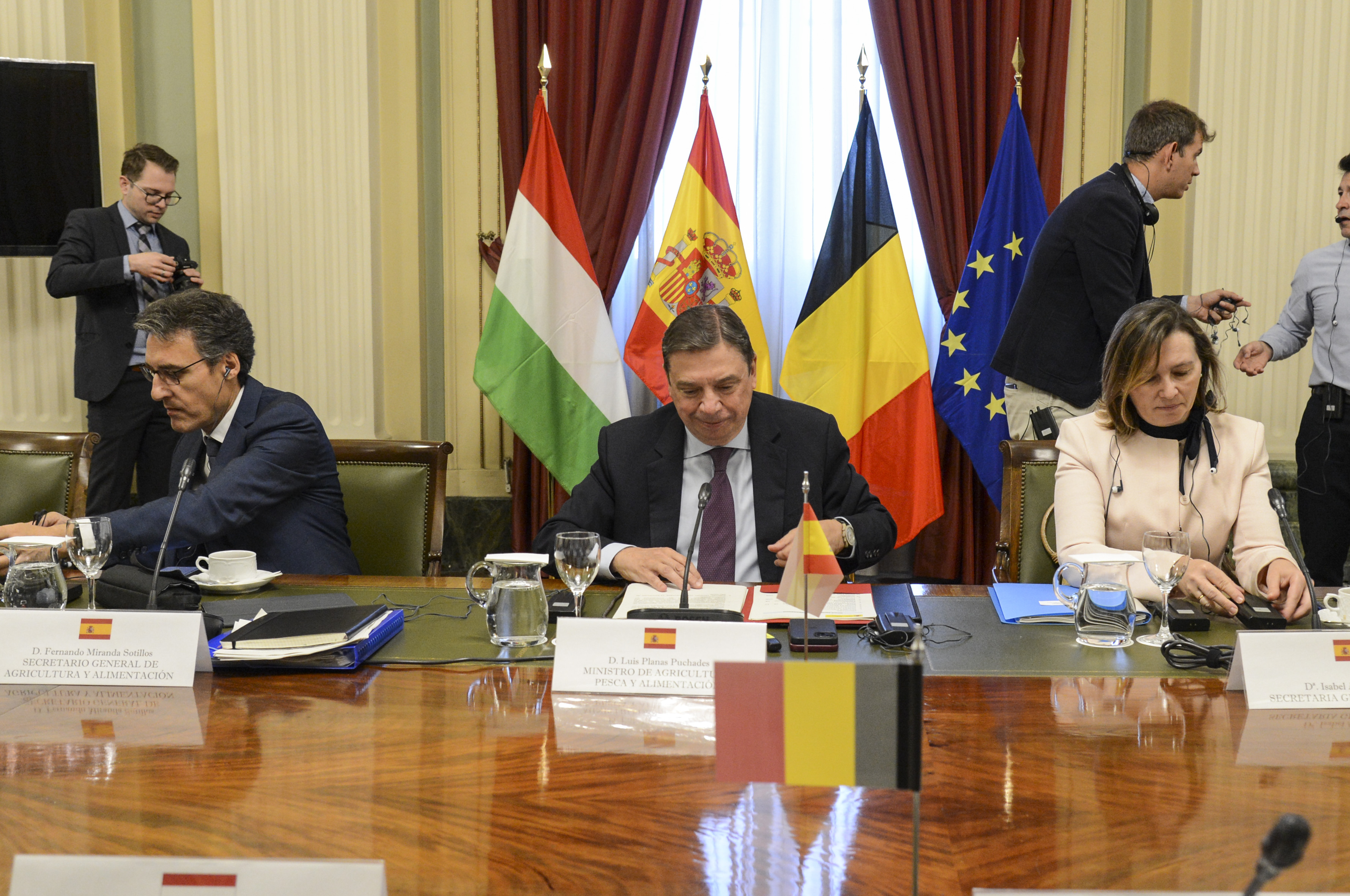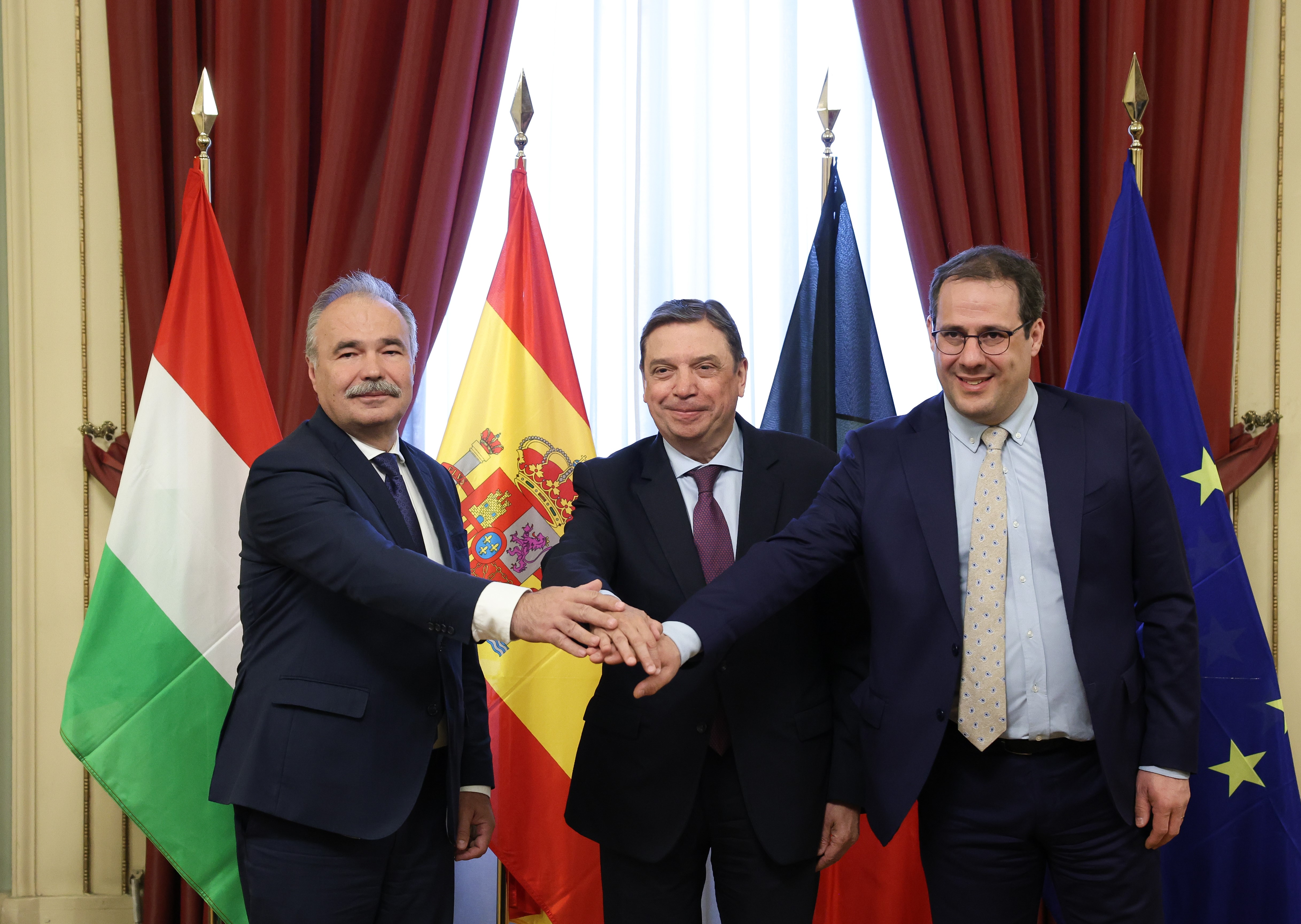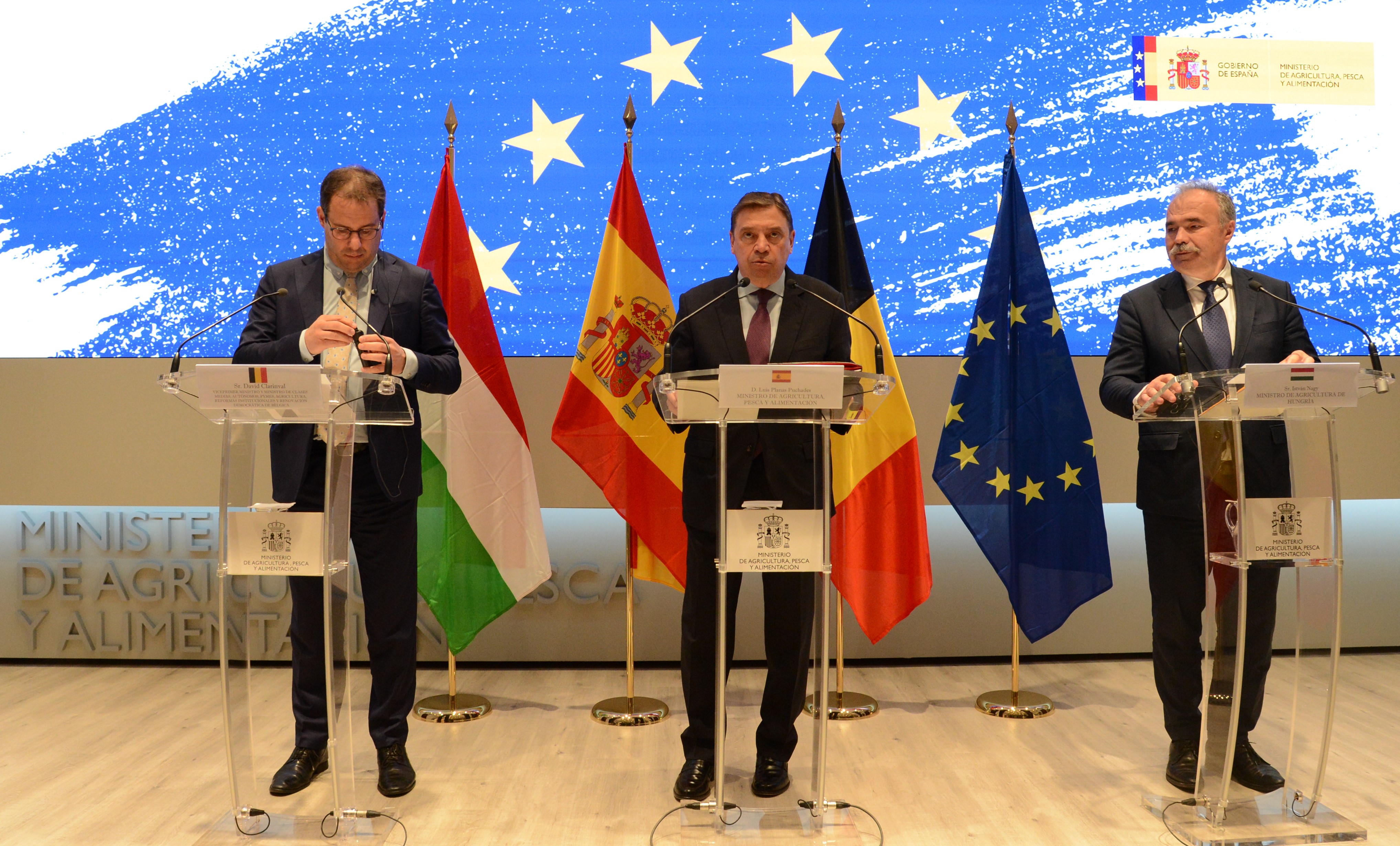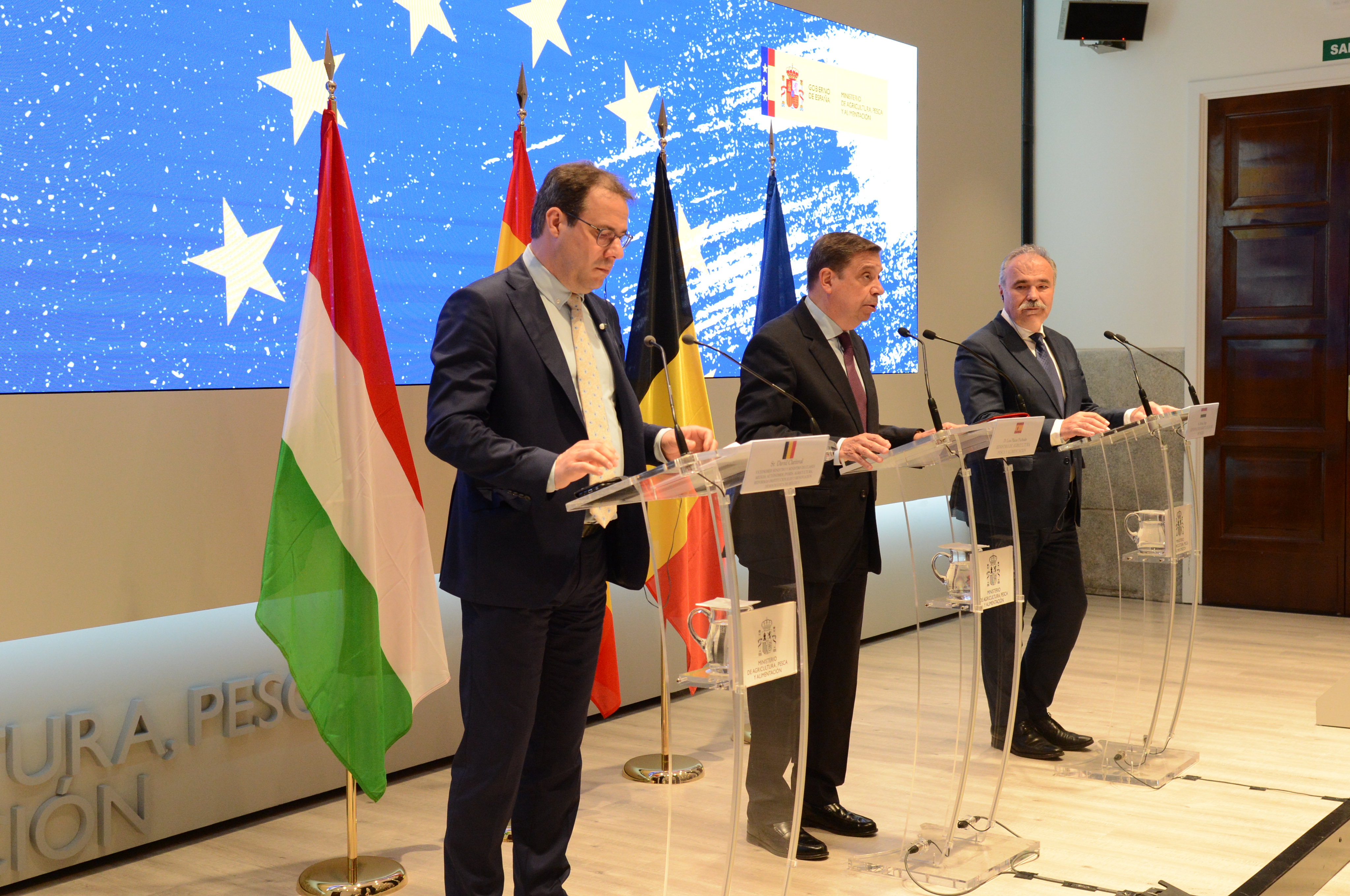 El ministro de Agricultura, Pesca y Alimentación, Luis Planas, se ha reunido con los ministros de Trabajadores Autónomos, Pymes, Agricultura y Reformas Institucionales y Renovación Democrática de Bélgica, David Clarinval, y con el de Agricultura de Hungría, István Nagyde, para preparar la presidencia del Consejo de la Unión Europea entre el 1 de julio de este año y el 31 de diciembre de 2024, año y medio en el que los tres países la ostentarán de forma sucesiva.