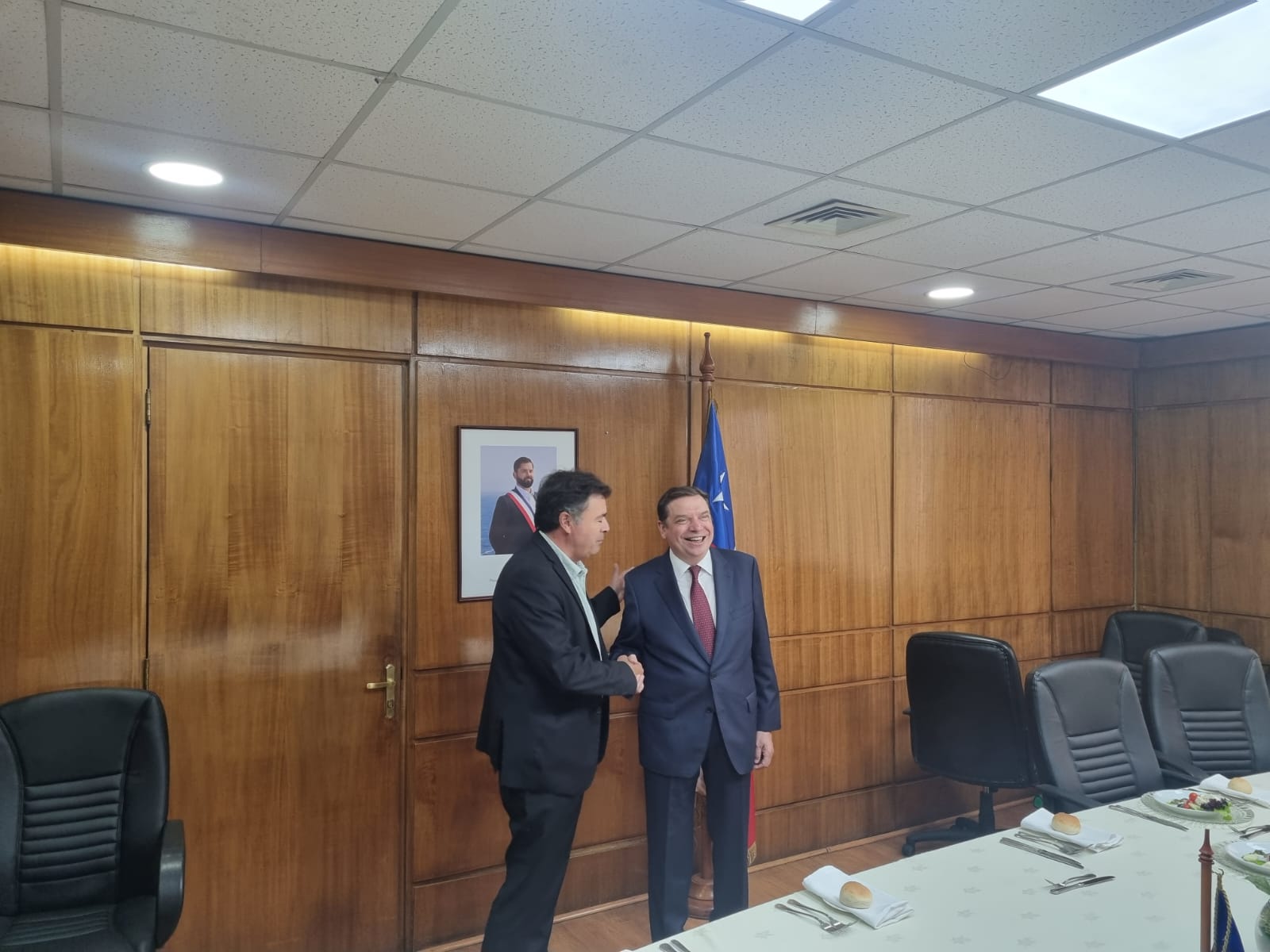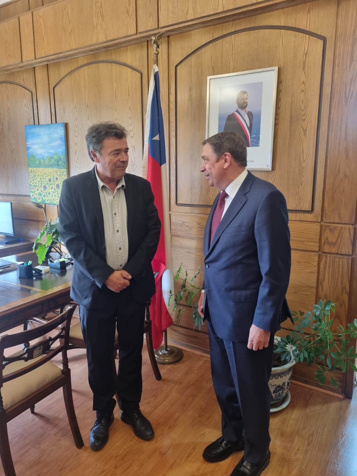 El ministro de Agricultura, Pesca y Alimentación, Luis Planas, y el ministro de Agricultura de Chile, Esteban Valenzuela, han anunciado hoy su disposición a colaborar en asuntos agroalimentarios de interés común. En una reunión bilateral, han coincidido en que es necesario conseguir una agricultura más resiliente al cambio climático, con regadíos más eficientes que ayuden a producir más con menos recursos naturales, de tal forma que quede garantizada la seguridad alimentaria.