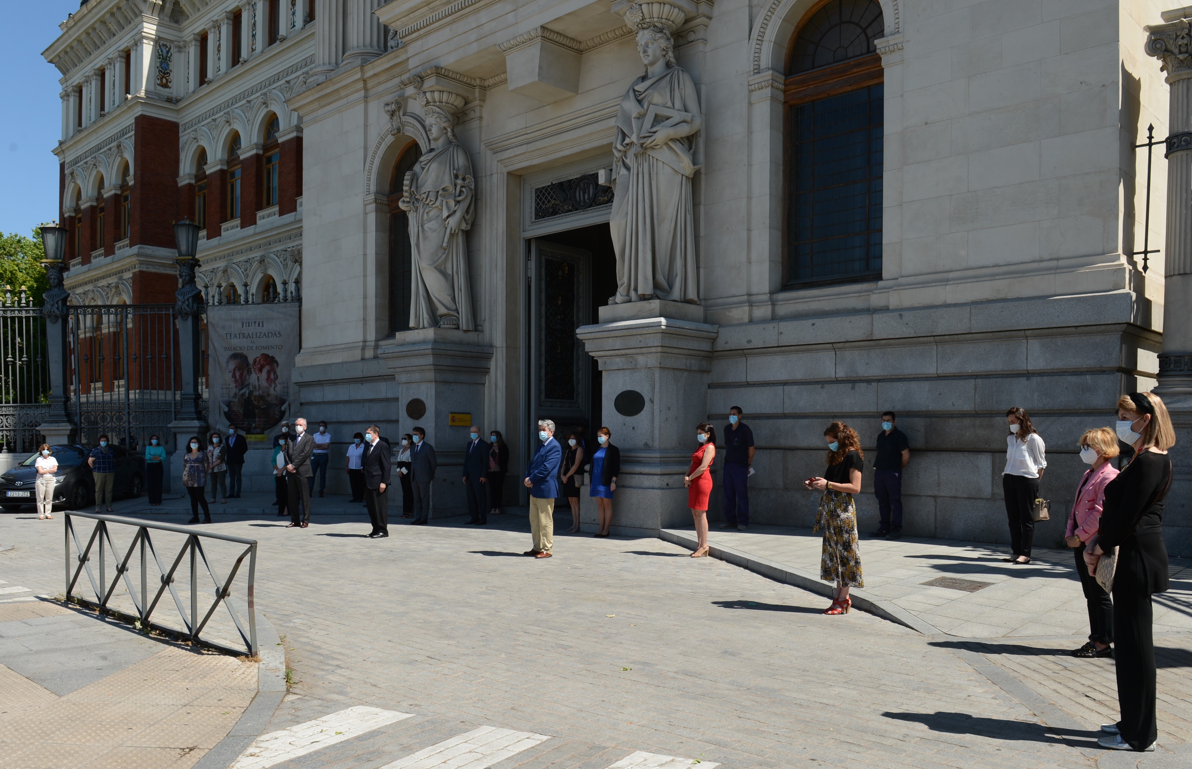 El ministro de Agricultura, Pesca y Alimentación, Luis Planas, ha guardado hoy, en la entrada de la sede principal del Ministerio, un minuto de silencio, junto a altos cargos y demás personal, de todas las sedes del Departamento, en recuerdo de las personas fallecidas como consecuencia de la pandemia de la COVID-19.