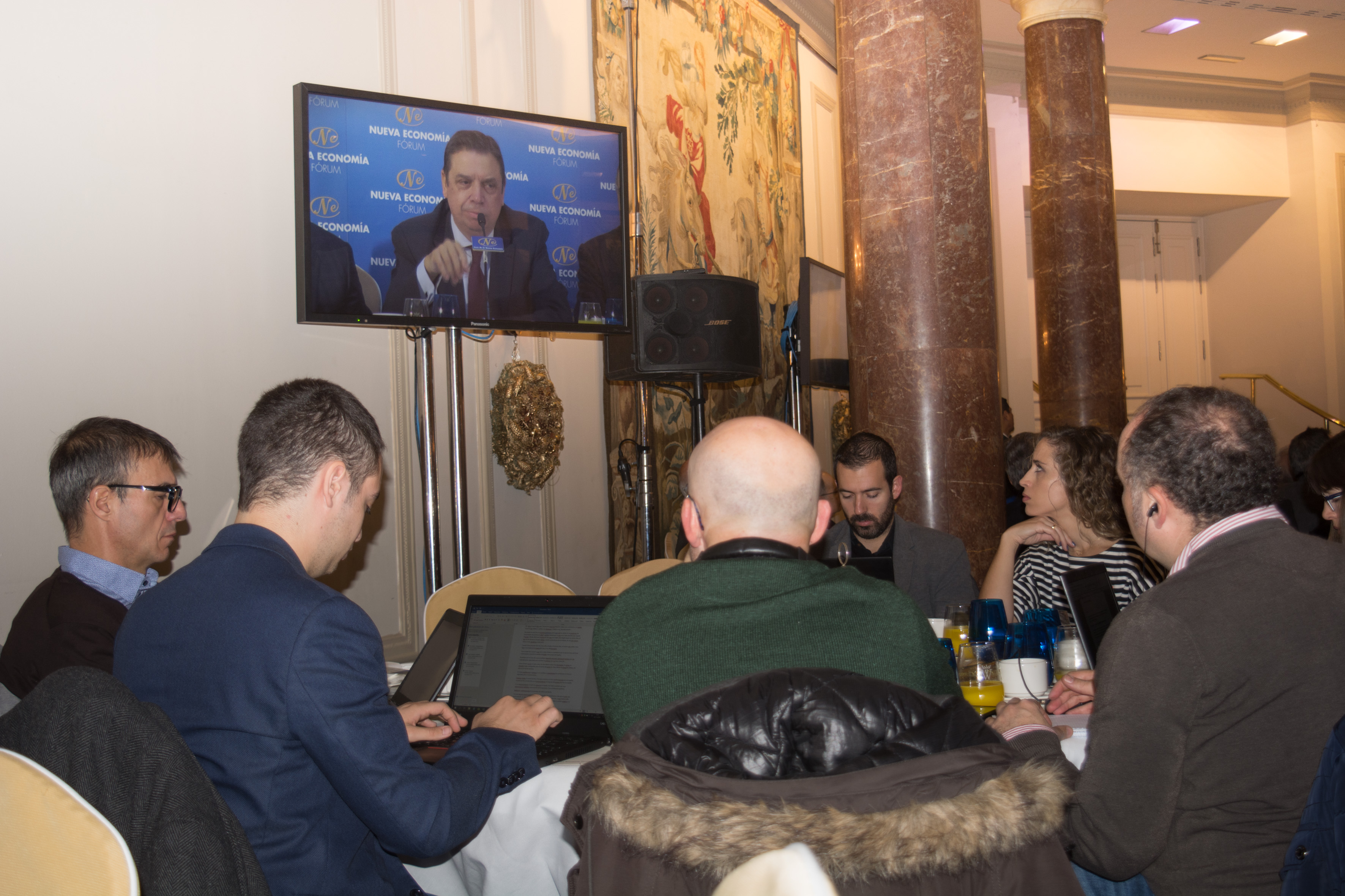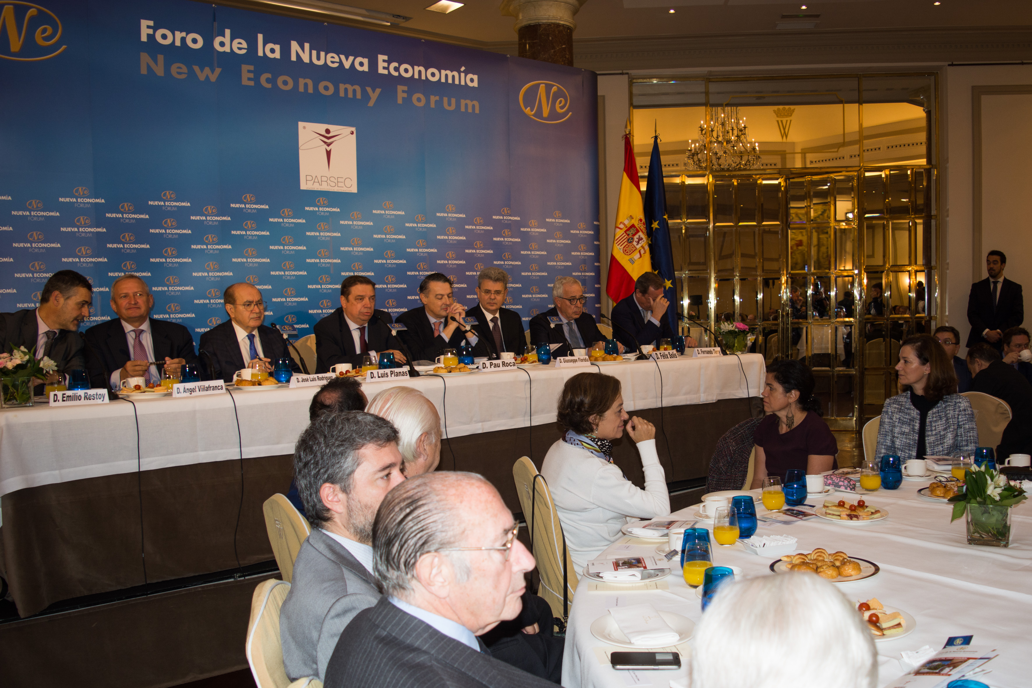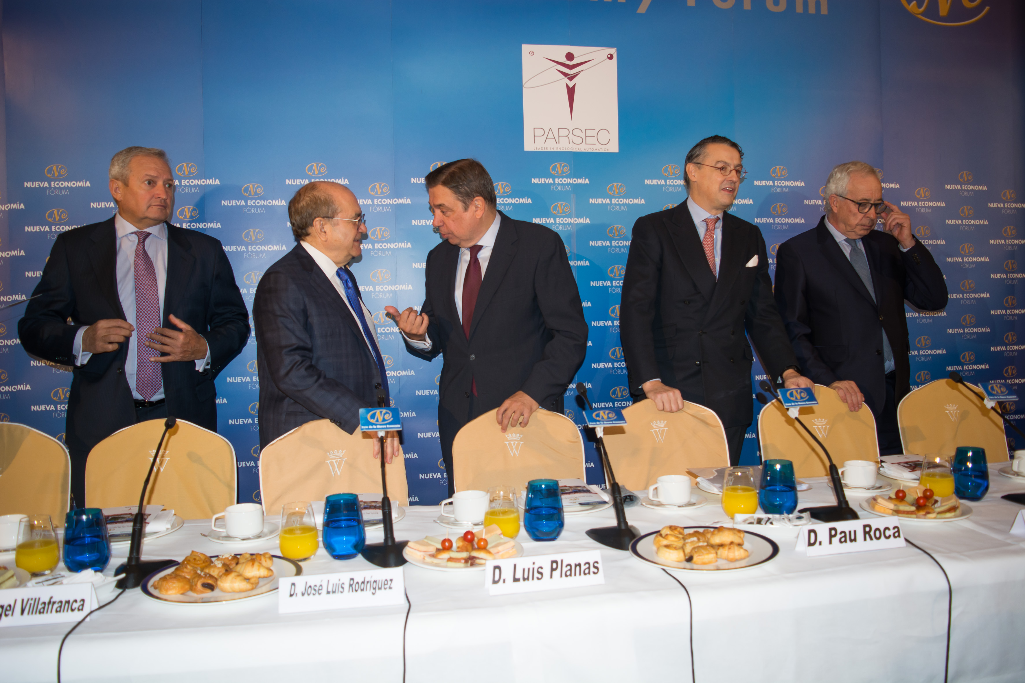 El ministro de Agricultura, Pesca y Alimentación en funciones, Luis Planas, ha presentado hoy la intervención, en el Foro de la Nueva Economía, del director general de la Organización Internacional de la Viña y del Vino (OIV), Pau Roca, el primer español que ostenta este cargo en los casi cien años de historia de este organismo, lo que supone un reconocimiento de primer nivel a la relevancia de la viticultura española.