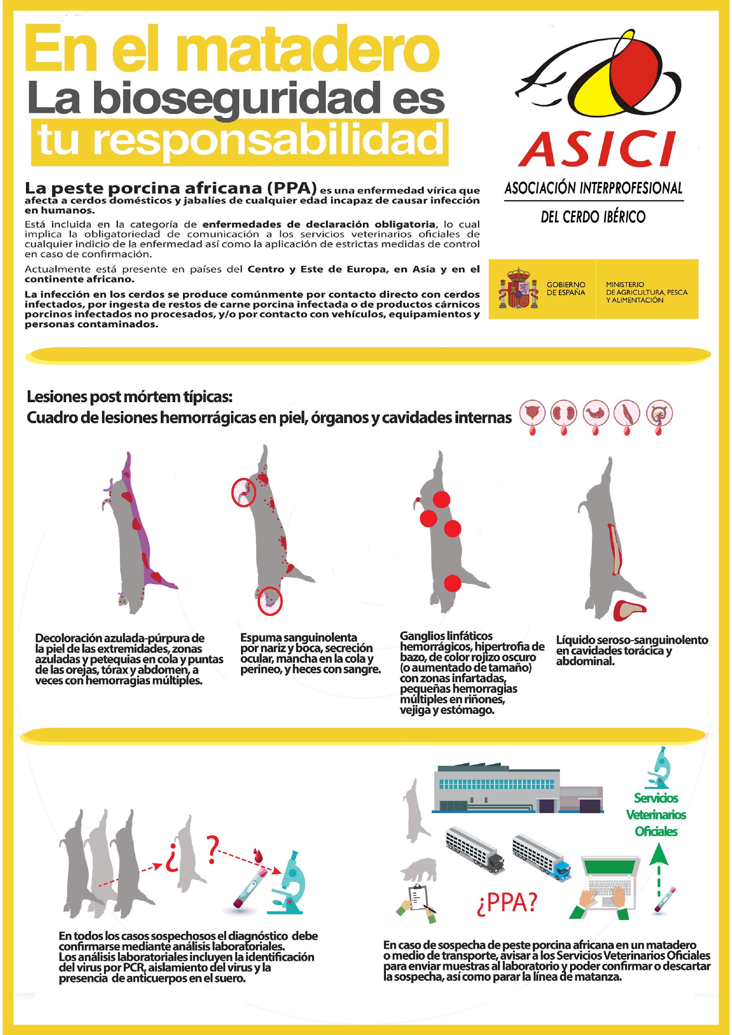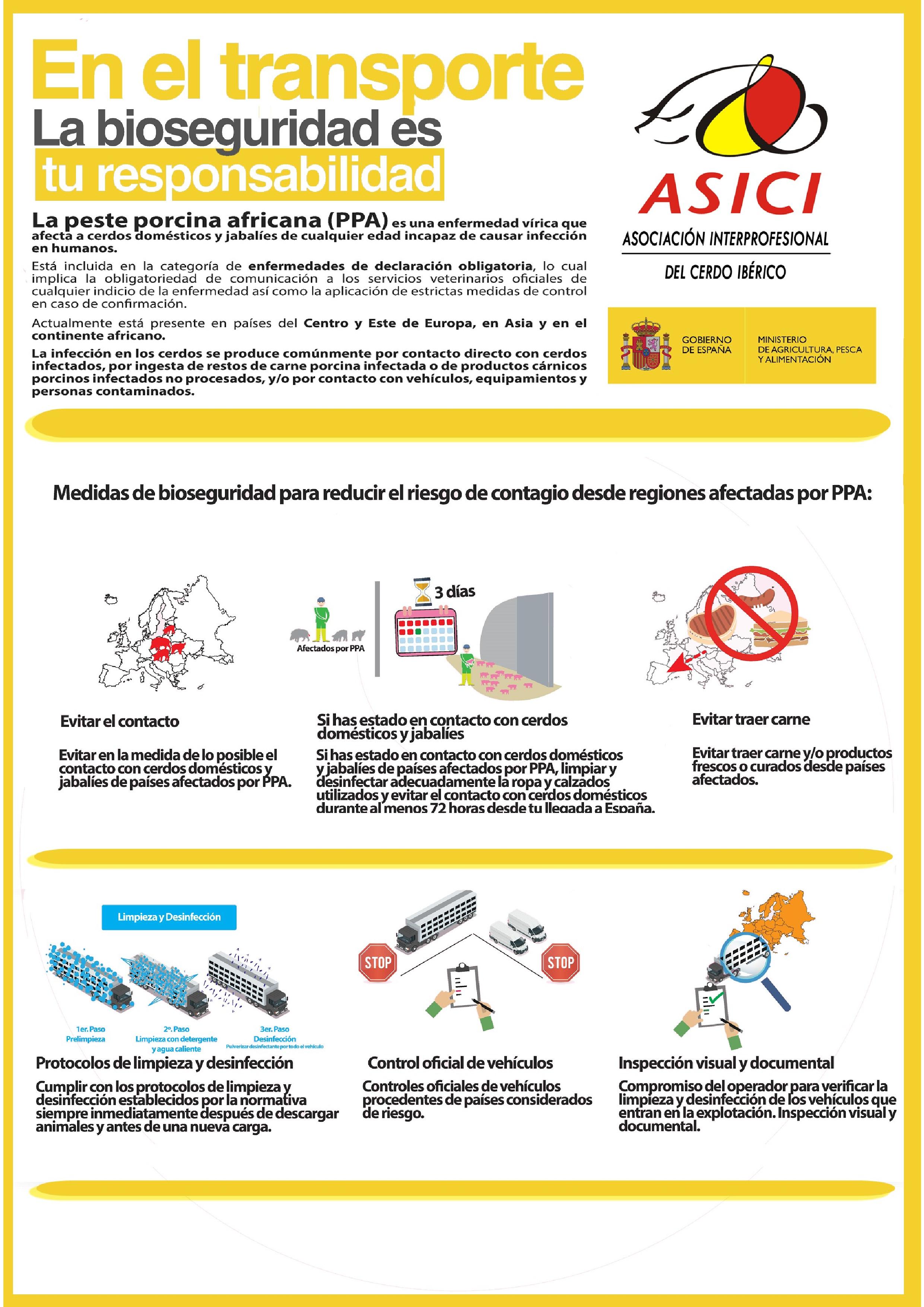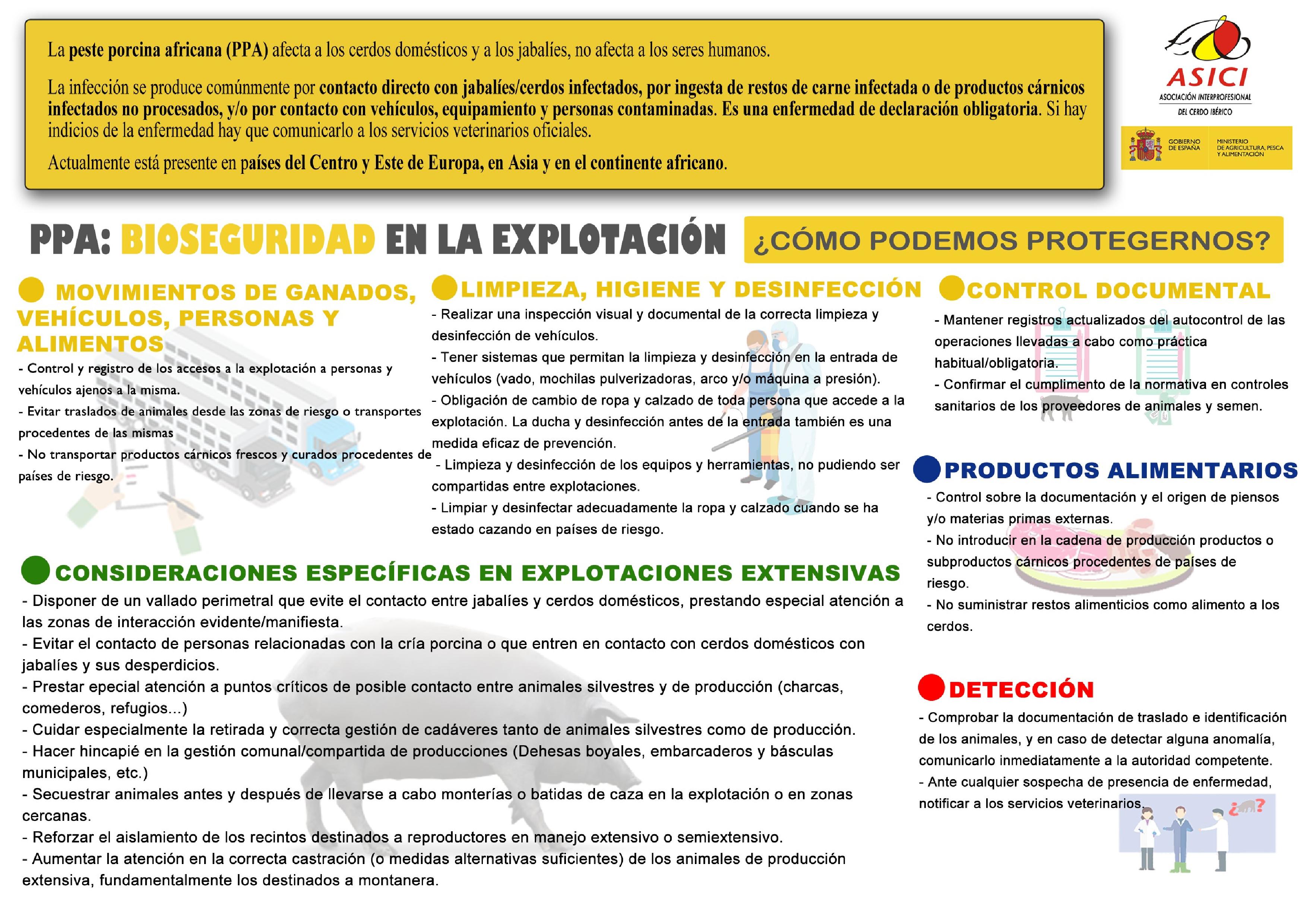 - Sensibilización en relación a la importancia de la aplicación de correctas medidas de bioseguridad en las explotaciones porcinas.