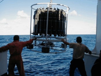 - Realización de estaciones con CTD en combinación con un recolector de muestras de agua.