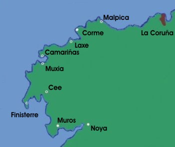 SITUACIÓN ÁREA DE LA COSTA DE LA MUERTE (Desde La Coruña hasta Noya)