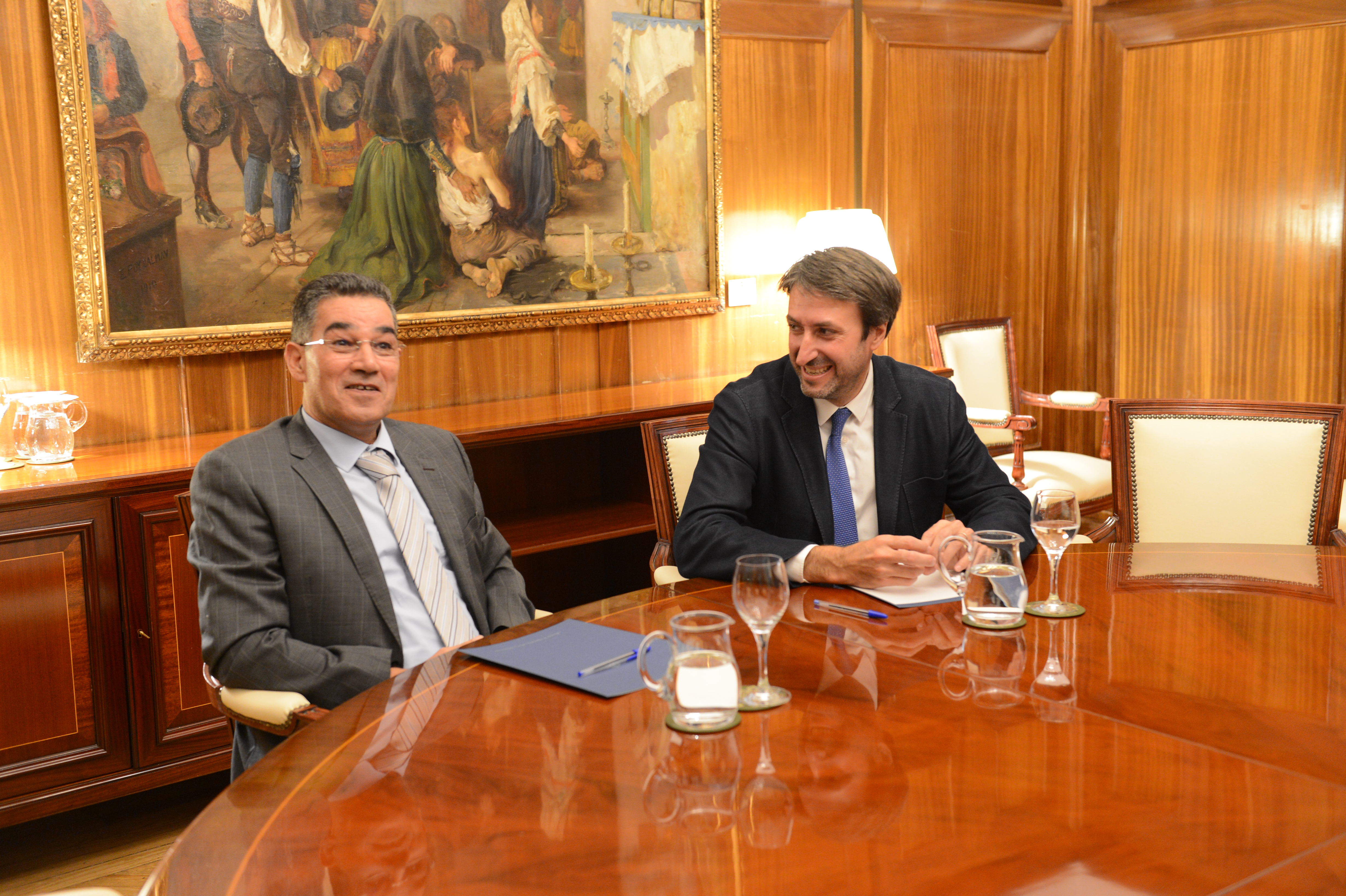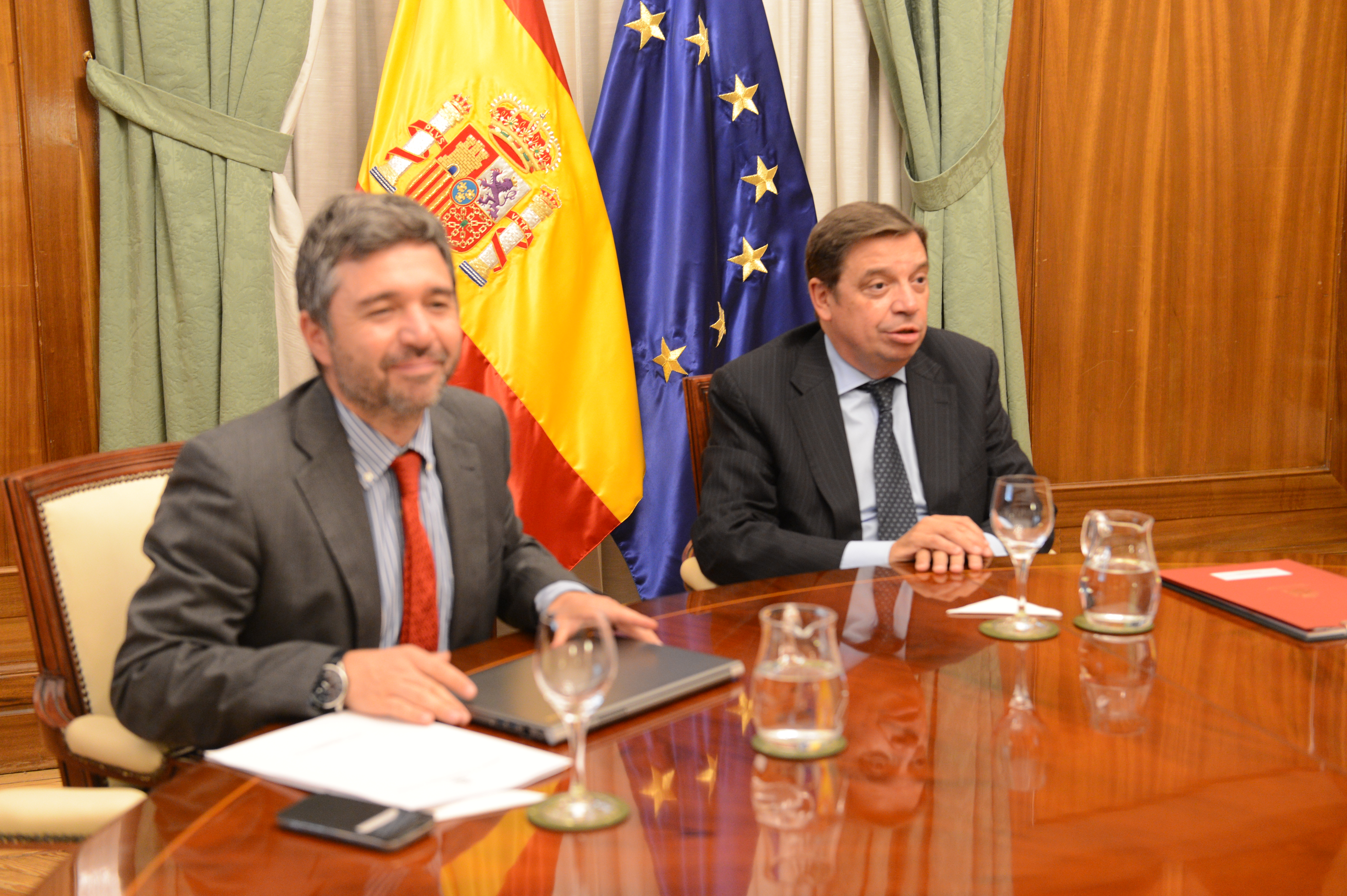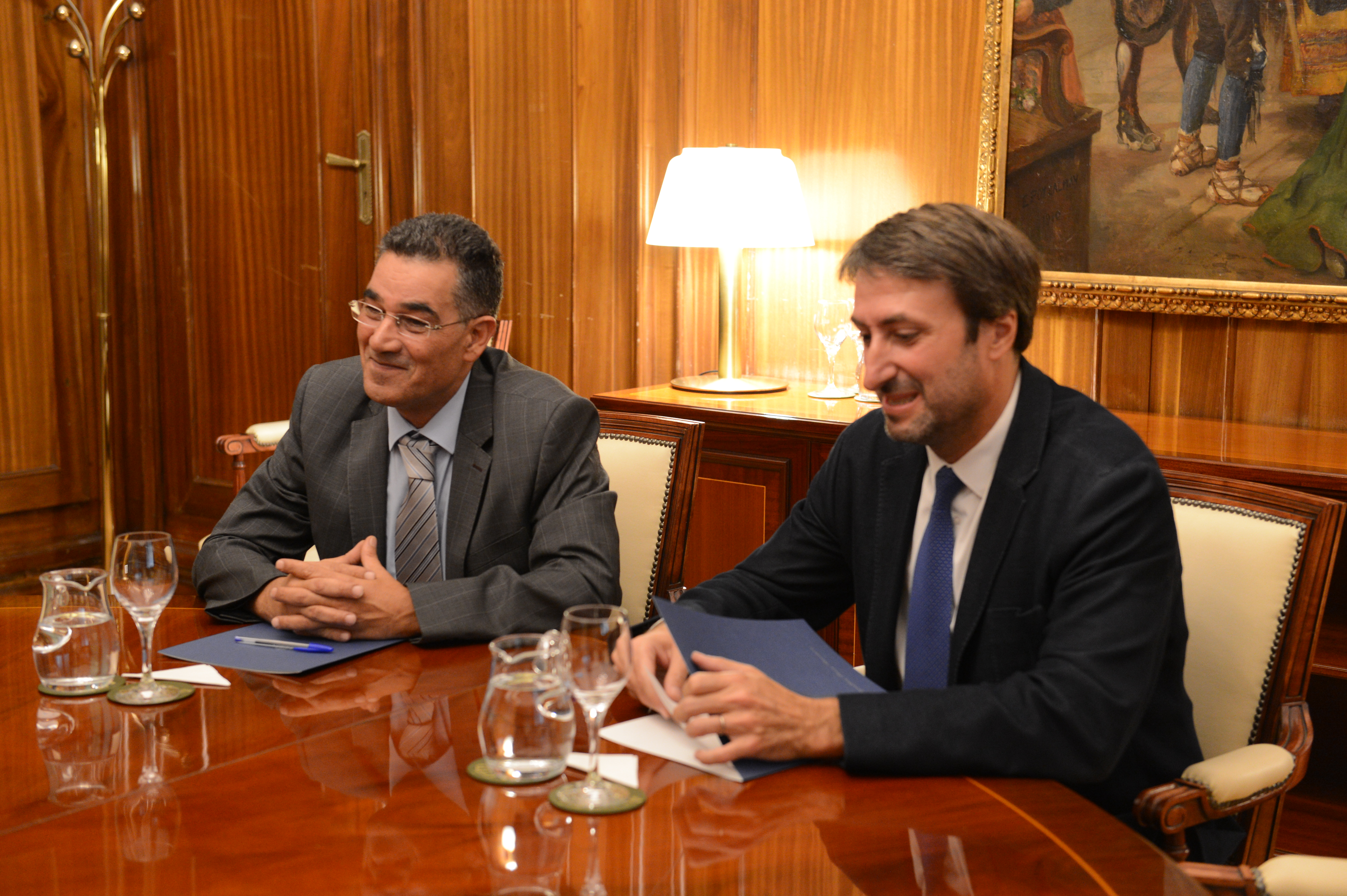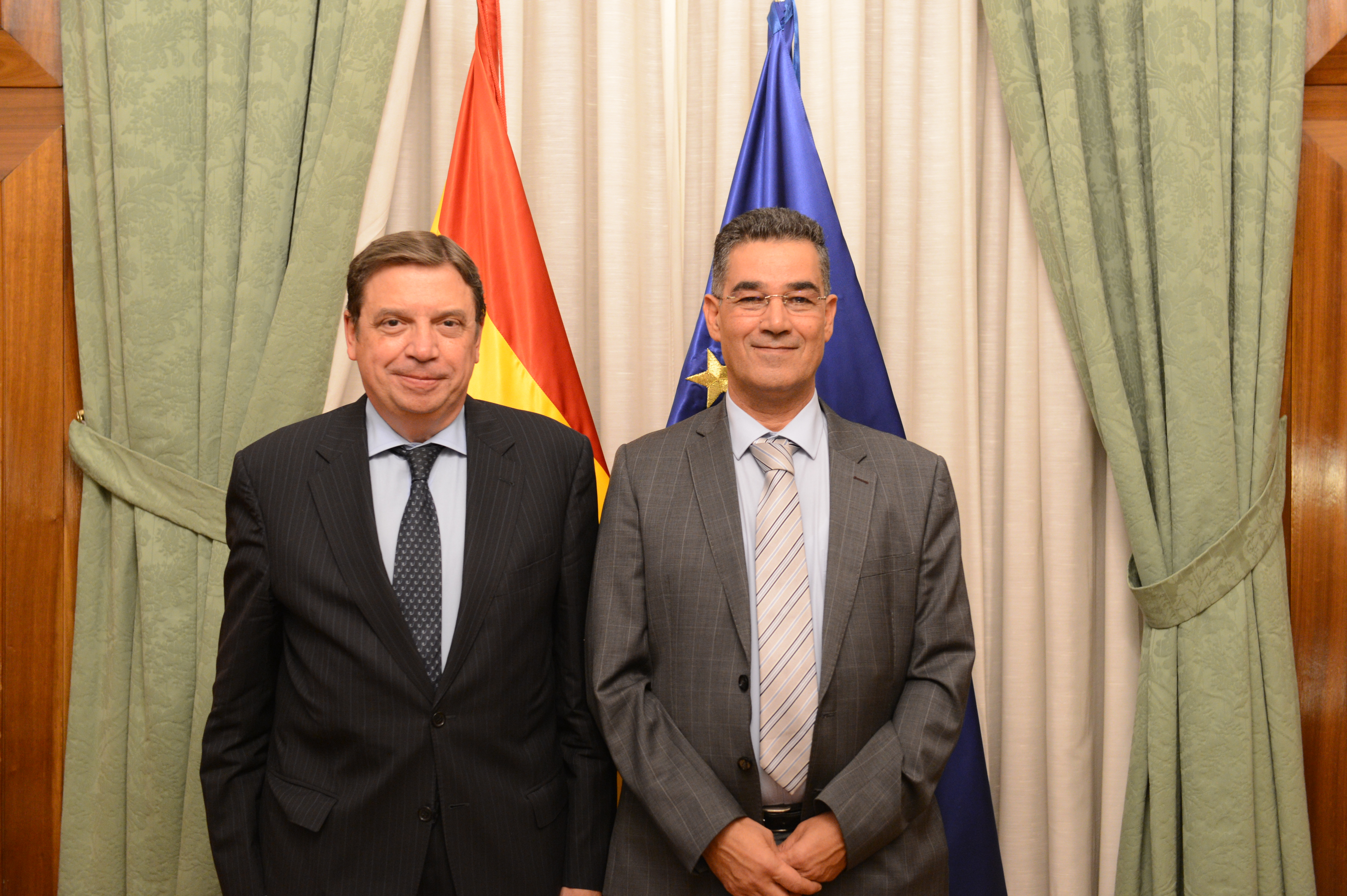 El ministro de Agricultura, Pesca y Alimentación, Luis Planas, se ha reunido hoy, en la sede del Ministerio, con Abdellatif Ghedira, director ejecutivo del Consejo Oleícola Internacional (COI), organismo formado por 14 miembros más la Unión Europea. Entre sus objetivos se encuentra el fomento de la expansión del comercio internacional del aceite de oliva y las aceitunas de mesa e incentivar su consumo.