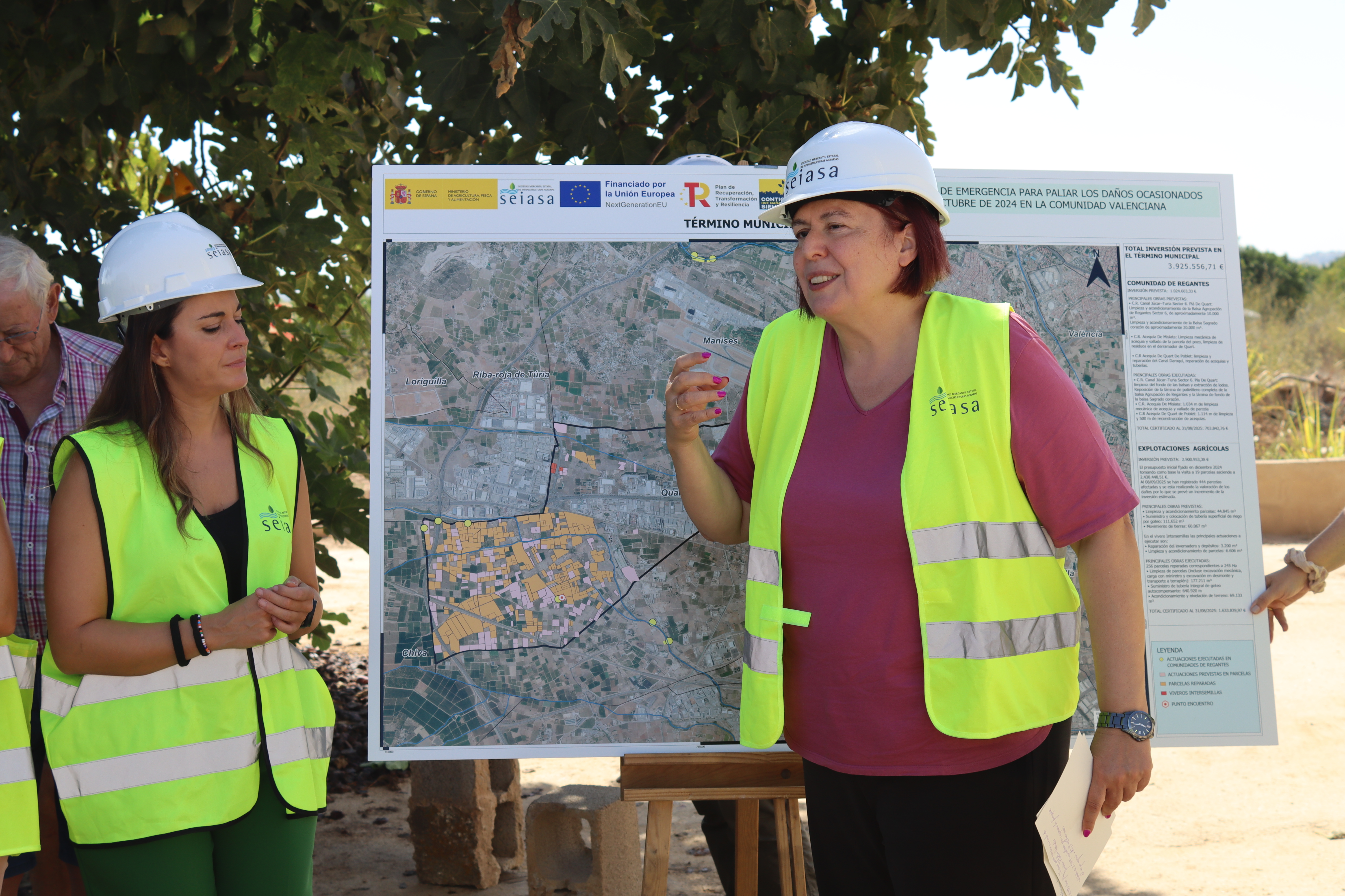La secretaria de Estado ha subrayado la labor de limpieza, reparación y preparación realizada por el Gobierno de España desde el mes de enero en las comunidades de regantes de Quart de Poblet. En total, se van a destinar 1.024.603 euros a estos trabajos, que afectan a tres comunidades de regantes.