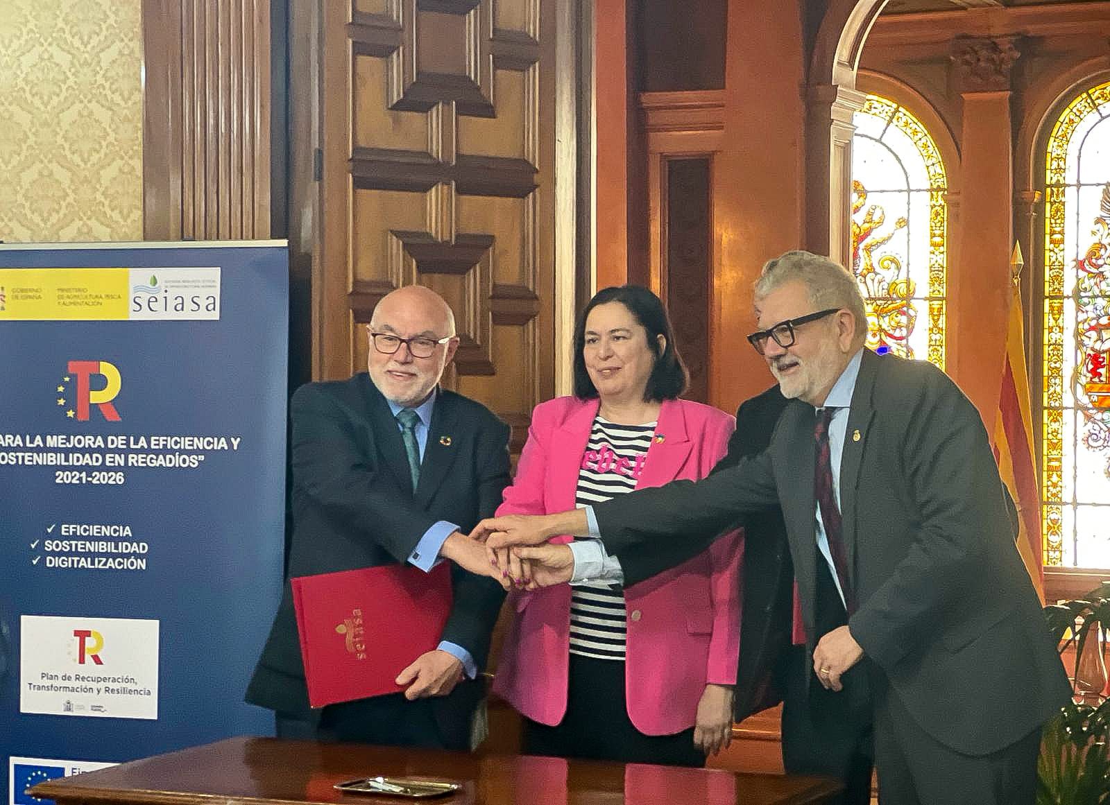 El Ministerio de Agricultura, Pesca y Alimentación (MAPA), a través de la Sociedad Mercantil Estatal de Infraestructuras Agrarias (SEIASA), ha formalizado hoy en Lleida dos convenios para destinar un total de 45.000.000 euros a ejecutar obras de modernización que permitan ahorrar agua y costes energéticos en regadíos de Huesca y Lleida.