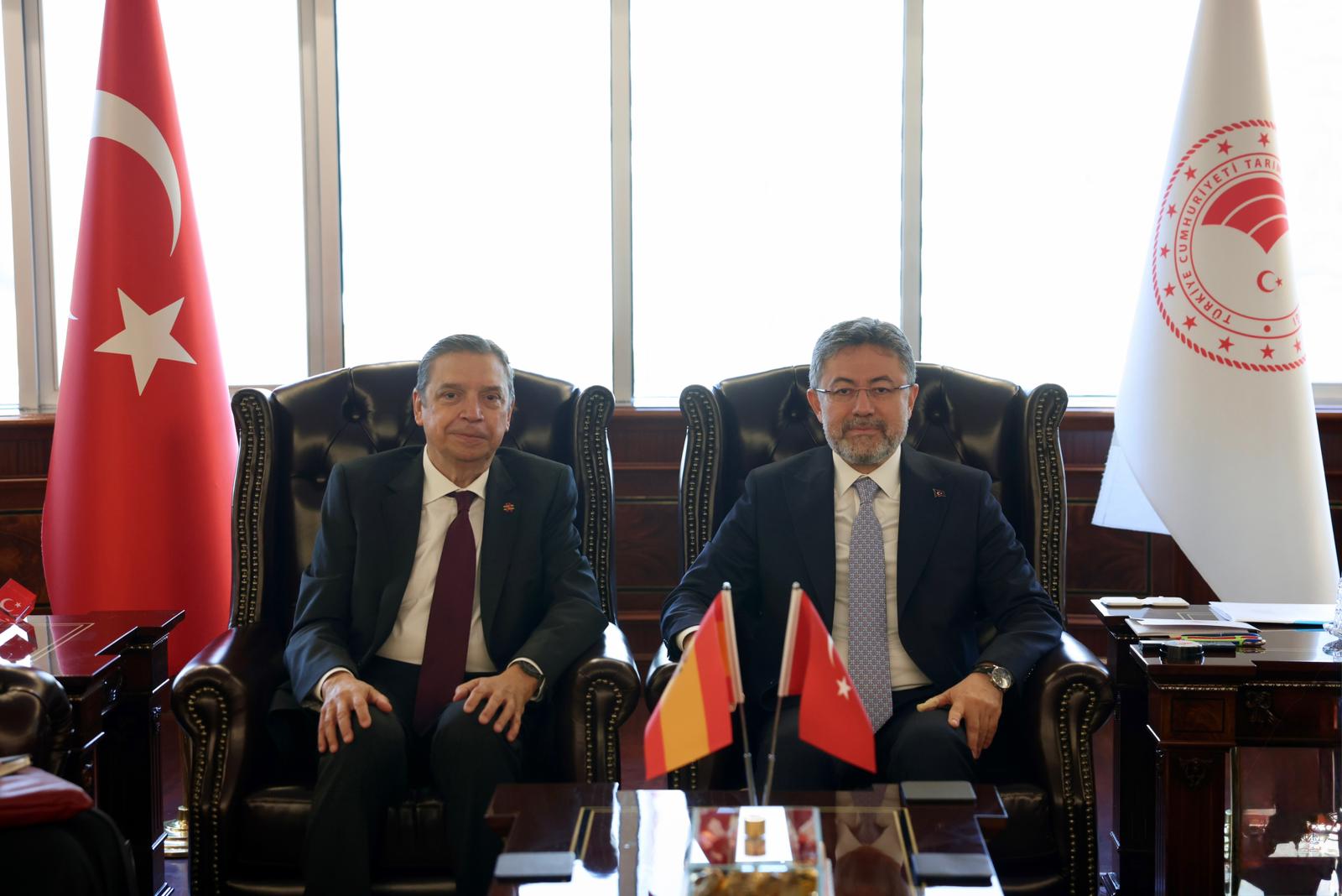 El ministro de Agricultura, Pesca y Alimentación, Luis Planas, y el ministro de Agricultura y Silvicultura de Turquía, İbrahim Yumaklı, han dado hoy un nuevo impulso a la cooperación bilateral en agricultura entre los dos países y han reforzado la colaboración en ámbitos estratégicos para el futuro del sector: la investigación y tecnología agraria, los seguros agrarios, así como en el impulso del desarrollo rural, con el foco puesto en el necesario relevo generacional.