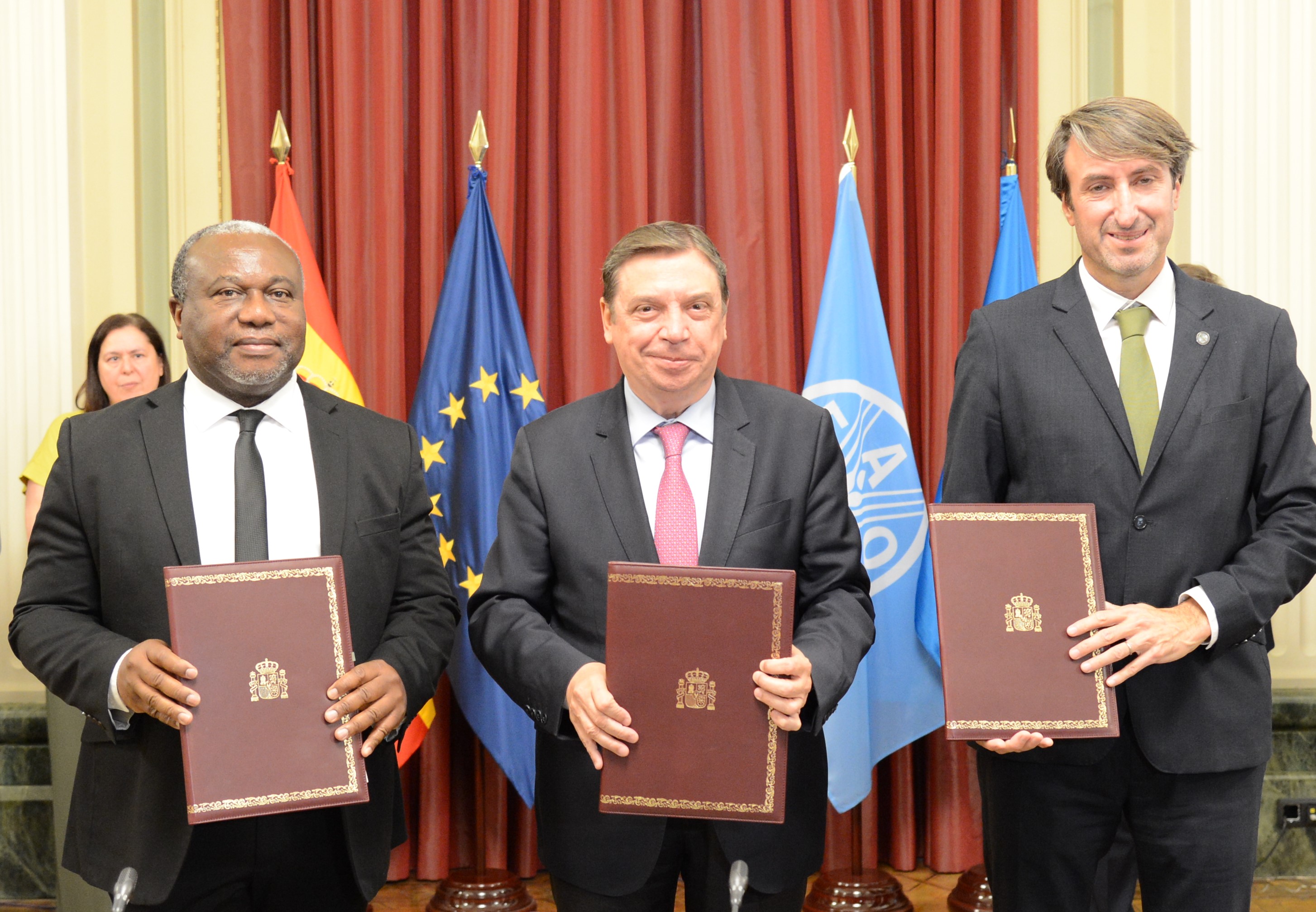 Junto al ministro Planas han firmado el acuerdo el director ejecutivo del Comité Oleícola Internacional (COI), Jaime Lillo, como institución anfitriona de la red de colecciones de germoplasma de olivo, y el secretario del Tirfaa, dependiente de la Organización de Naciones Unidas para la Alimentación y la Alimentación (FAO), Kent Nnadozie.