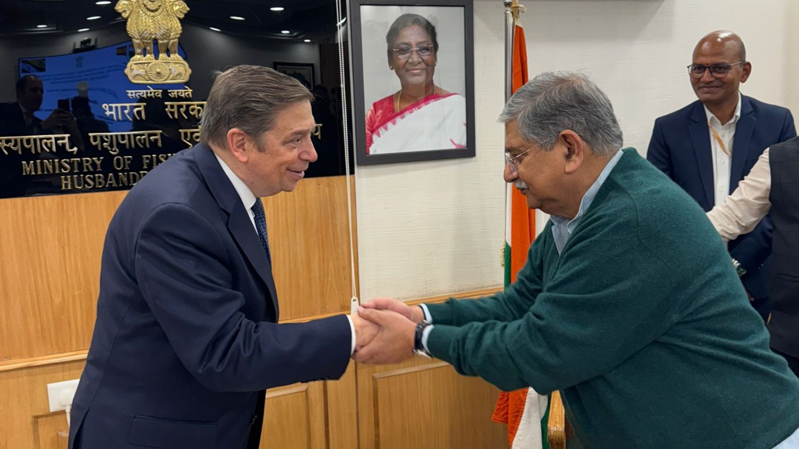 El ministro de Agricultura, Pesca y Alimentación, Luis Planas, se ha reunido hoy en Nueva Delhi con el ministro de Pesca, Ganadería e Industria Láctea de la República de la India, Rajiv Ranjan, y con el ministro de Industrias de Procesado de Alimentos, Chirag Paswan.