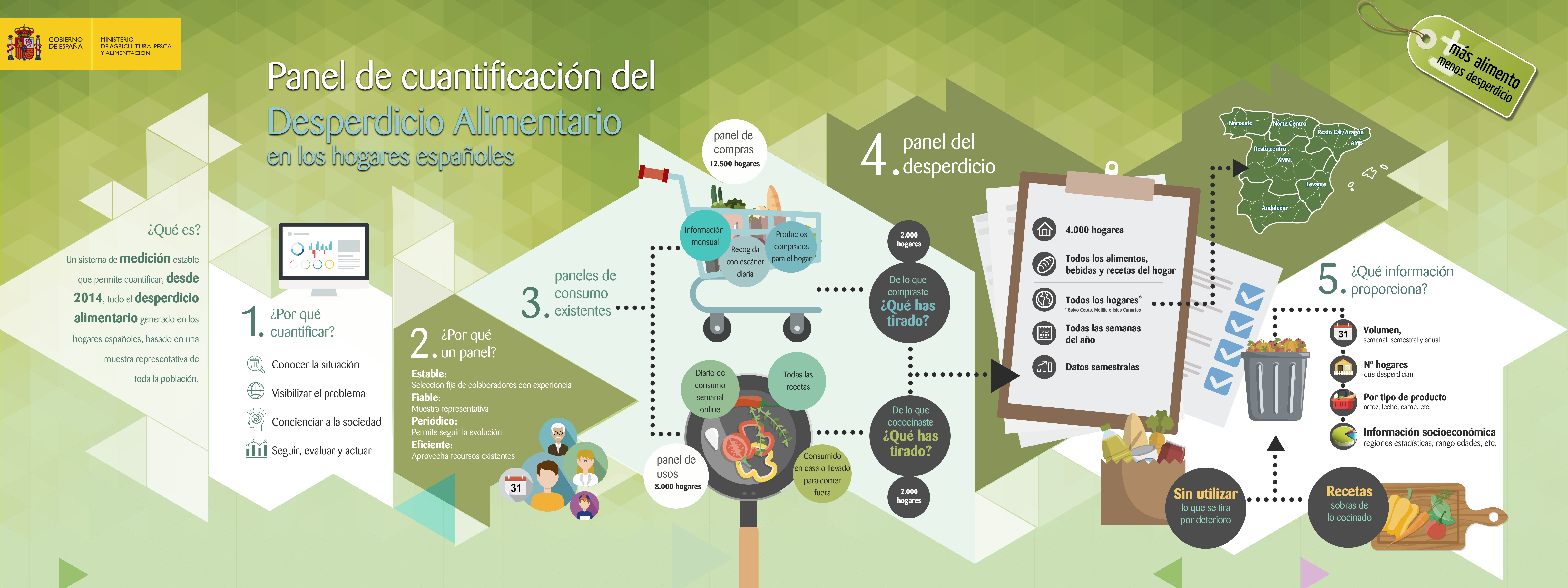 El panel de cuantificación del MAPA proporciona información detallada de las cantidades de alimentos desperdiciados en los hogares españoles. Es un instrumento informativo para concienciar sobre la compra responsable de alimentos y promover un consumo ajustado a las necesidades alimentarias. El desperdicio alimentario es una preocupación internacional. Reducirlo es uno de los Objetivos de Desarrollo Sostenible (ODS) de la ONU.