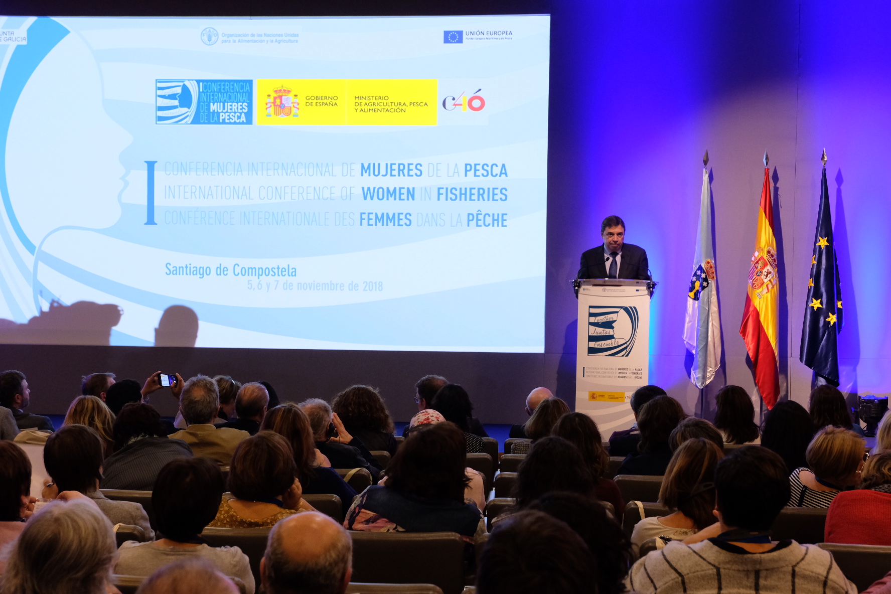 El ministro de Agricultura, Pesca y Alimentación, Luis Planas, ha inaugurado hoy la I Conferencia Internacional de Mujeres de la Pesca, que se celebra en Santiago de Compostela del 5 al 7 de noviembre, organizado conjuntamente por este Ministerio y la FAO para el intercambio de conocimientos y experiencias que impulsen la puesta en valor del trabajo de las mujeres en este ámbito.