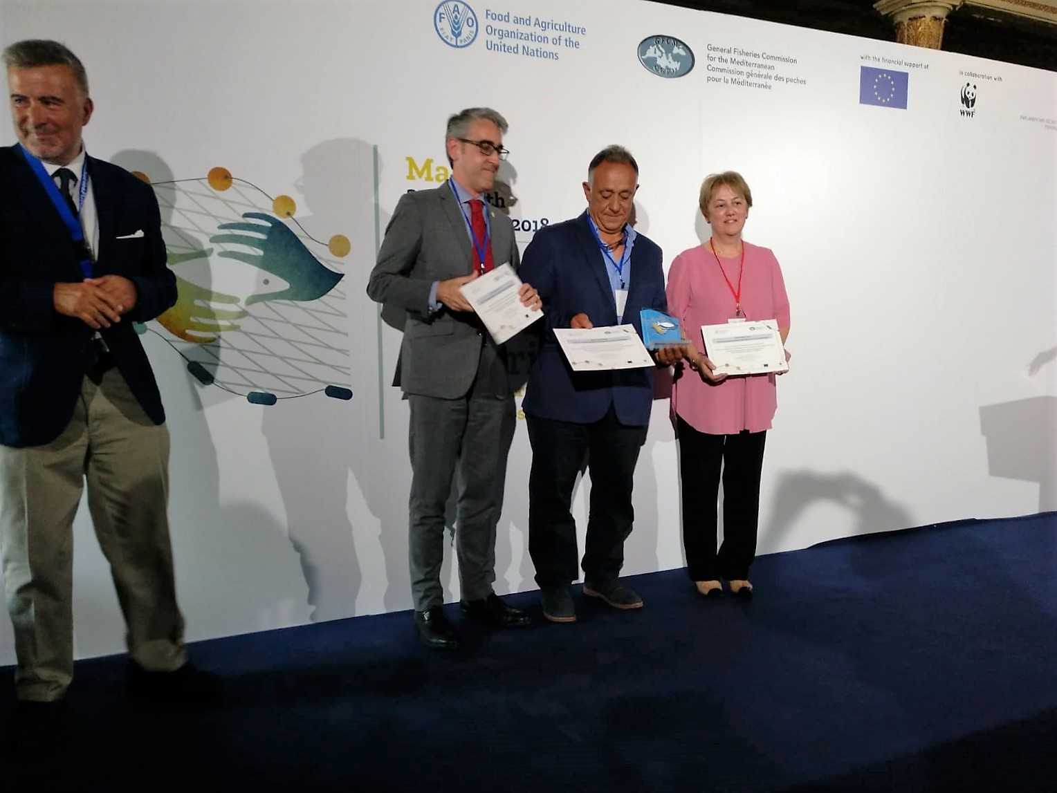 Durante la segunda jornada se ha realizado el acto de entrega de premios a los más destacados entre los seleccionados. Uno de esos premios fue otorgado conjuntamente a la Federación catalana de cofradías, la Consejería de Agricultura, Ganadería, Pesca y Alimentación y a la Secretaría General de Pesca, por la experiencia del plan de gestión del sonso en aguas del litoral catalán.