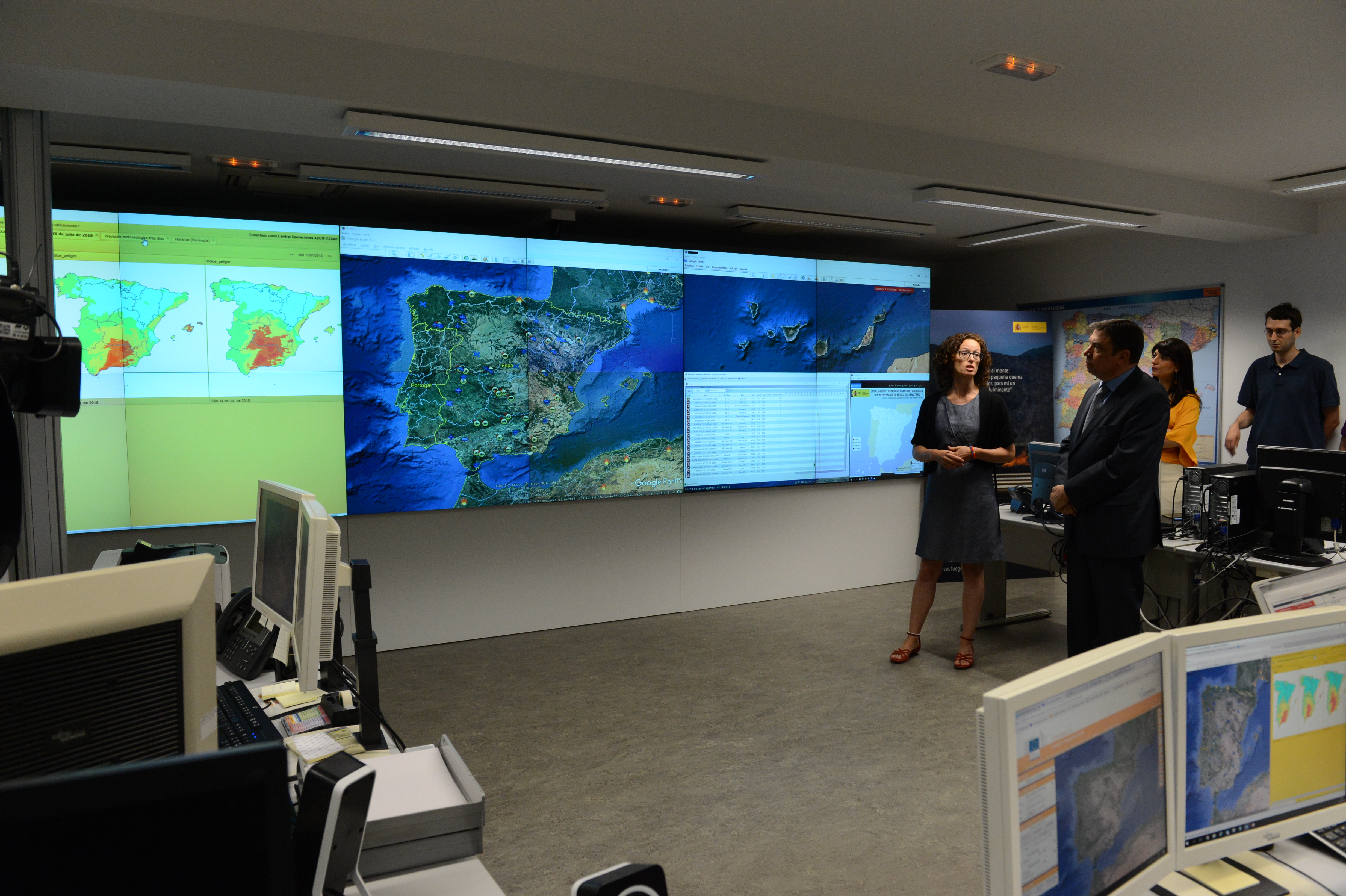 Durante la presentación de la campaña, el ministro ha visitado el Centro de Operaciones (Centro de Coordinación – CCINF), encargado de la gestión del operativo de extinción y que cuenta con avanzada tecnología que permite disponer de toda la información necesaria para la toma de decisiones, como la ubicación en tiempo real de todos los medios aéreos de extinción de España; información a tiempo real de la situación de los incendios, aportada por aeronaves y drones; o datos meteorológicos.