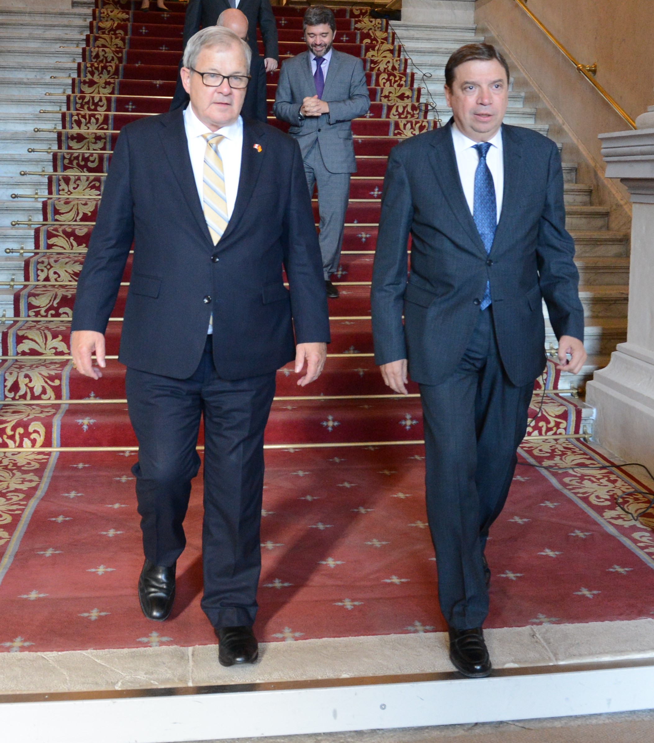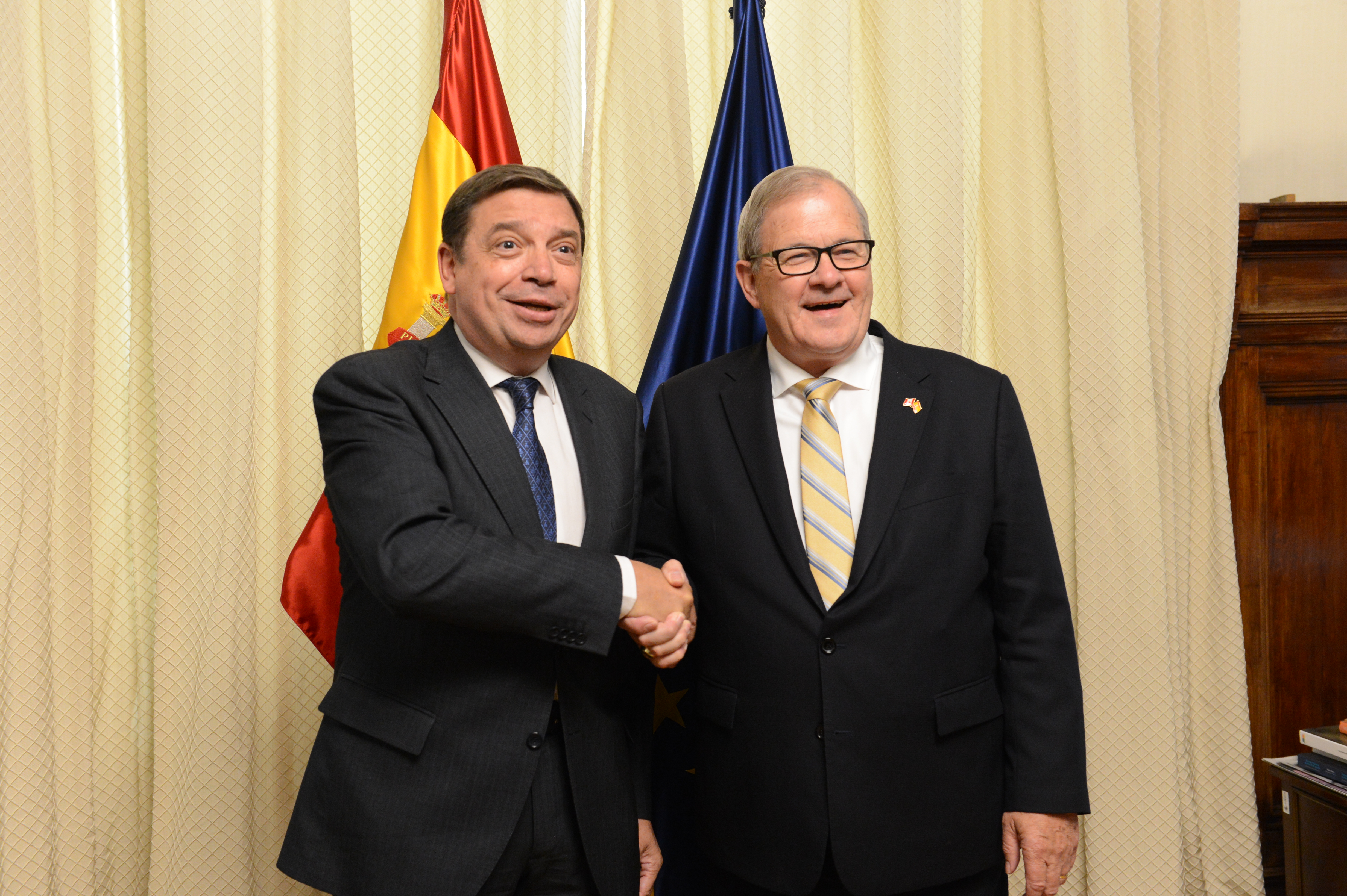 El ministro de Agricultura, Pesca y Alimentación, Luis Planas, se ha mantenido hoy una reunión con el ministro de Agricultura y Agroalimentación de Canadá, Lawrence MacAulay, en la que han intercambiado impresiones sobre las relaciones comerciales entre ambos países en el marco del Acuerdo Económico y Comercial Global entre la Unión Europea y Canadá, más conocido como CETA.