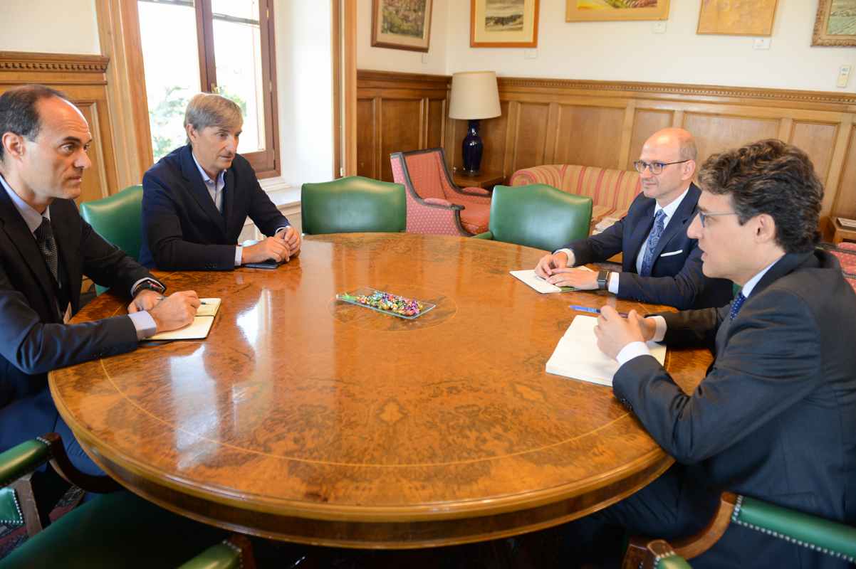 El secretario general de Agricultura y Alimentación, Fernando Miranda, se ha reunido hoy con el presidente del Consejo Regulador de la Denominación de Origen Protegida Cava, Javier Pagés, y con su secretario general, Alexandre Comellas, con quien ha abordado diferentes aspectos de la estrategia de valorización del cava que impulsa esta Denominación de Origen.