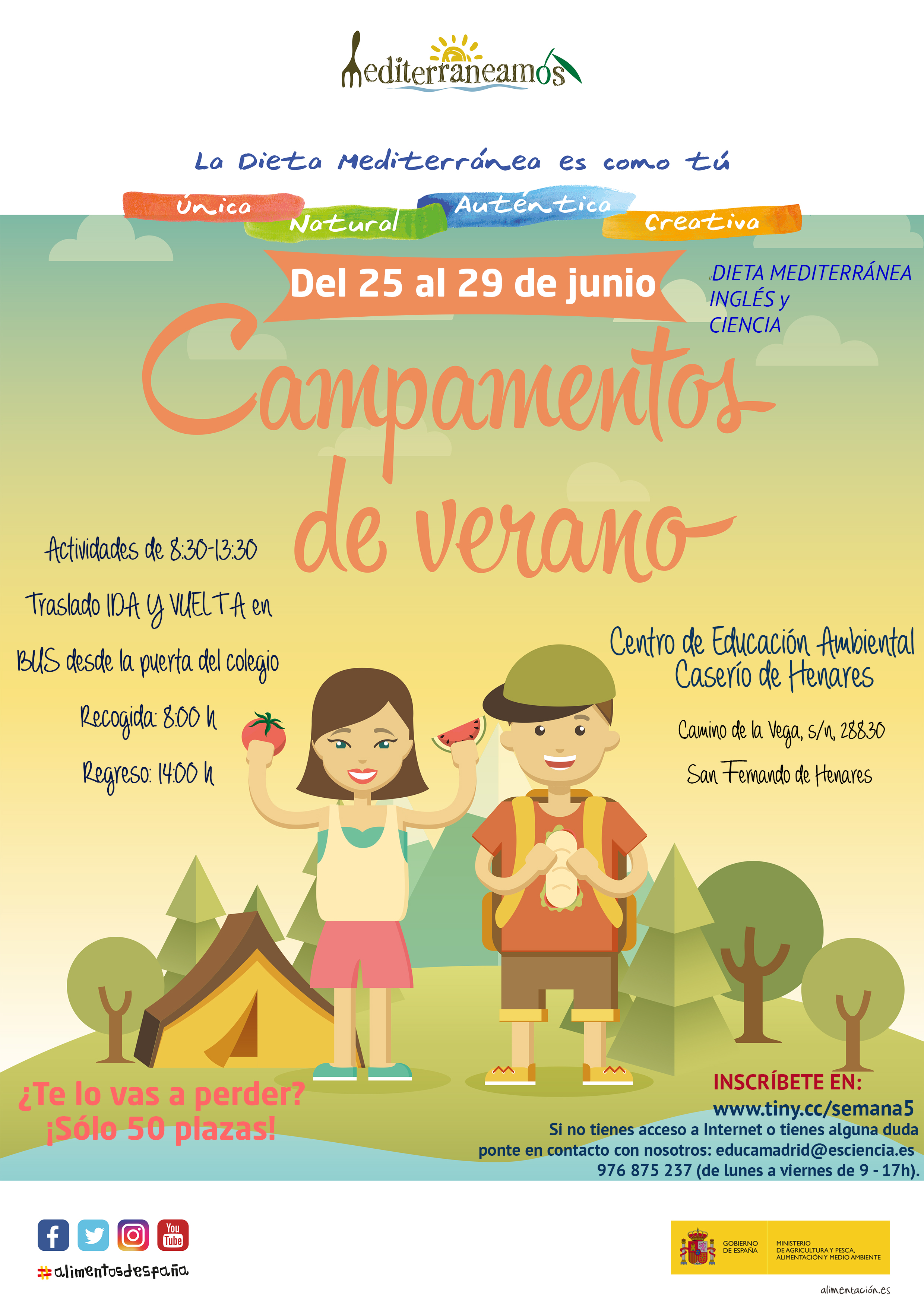 El Ministerio de Agricultura, Pesca y Alimentación inicia una nueva edición de los Campamentos de Verano “mediterraneamos”, para que los niños y niñas de entre 6 y 12 años descubran los beneficios de la Dieta Mediterránea a través de distintas actividades.