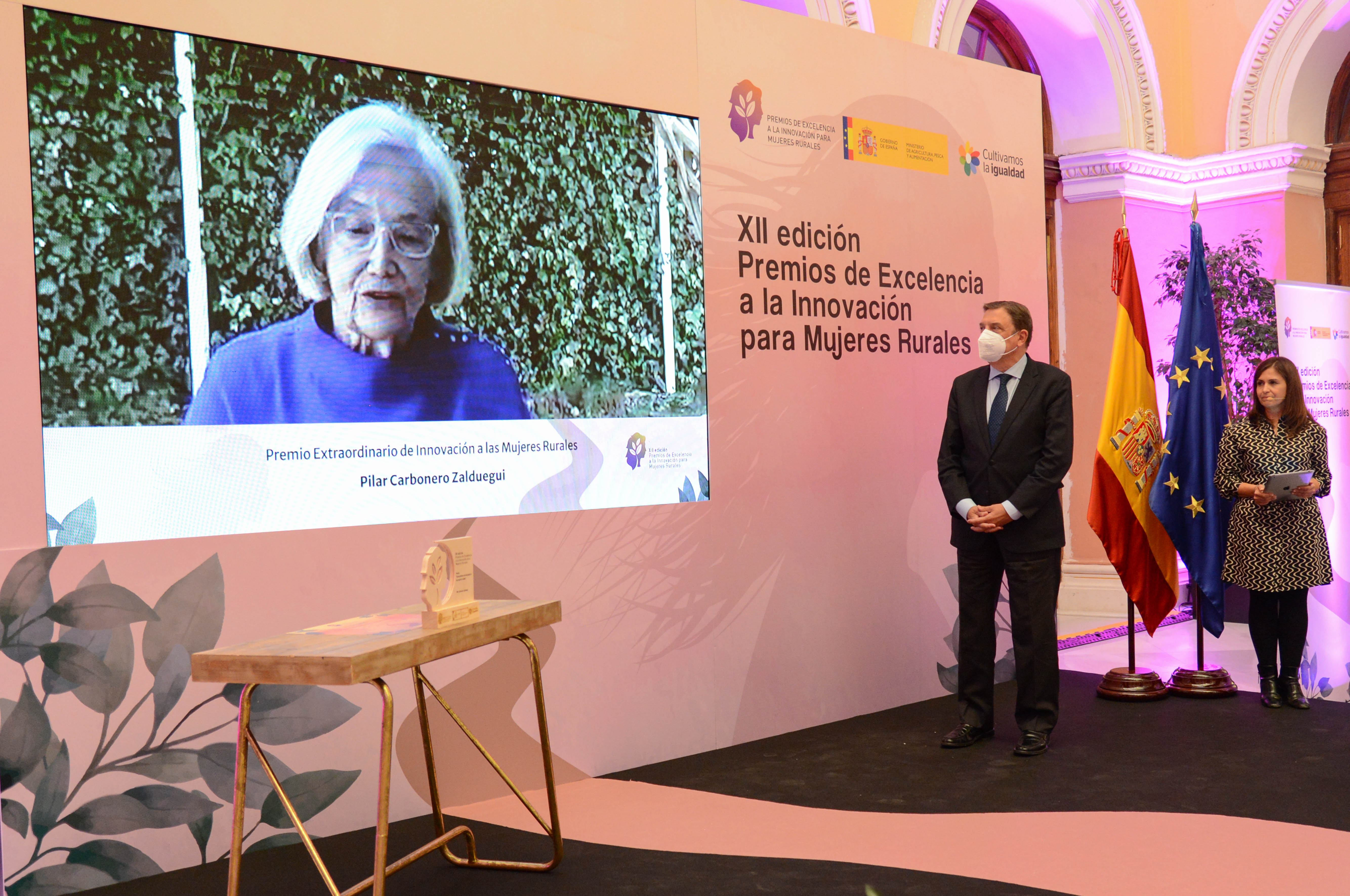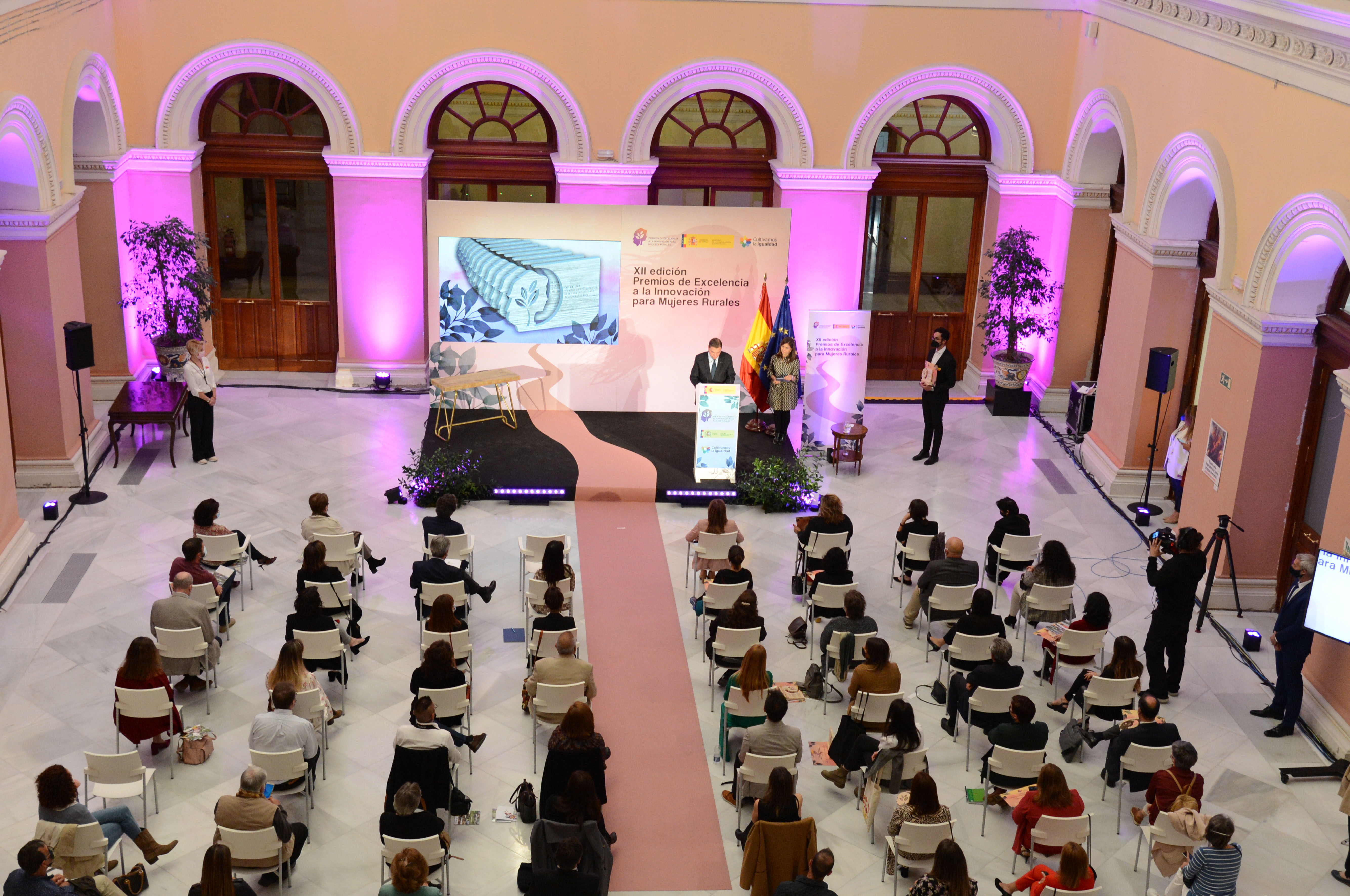 Luis Planas ha presidido, en la sede ministerial, la entrega de los XII Premios de Excelencia a la Innovación para Mujeres Rurales, que han recuperado su formato presencial y que constituyen una de las líneas de reconocimiento del Ministerio de Agricultura, Pesca y Alimentación a los proyectos y trayectorias de las mujeres rurales. Son galardones dirigidos a la originalidad e innovación en actividades agrarias, pesqueras o acuícolas que contribuyan a la diversificación de la actividad económica en al ámbito rural y al emprendimiento de las mujeres.