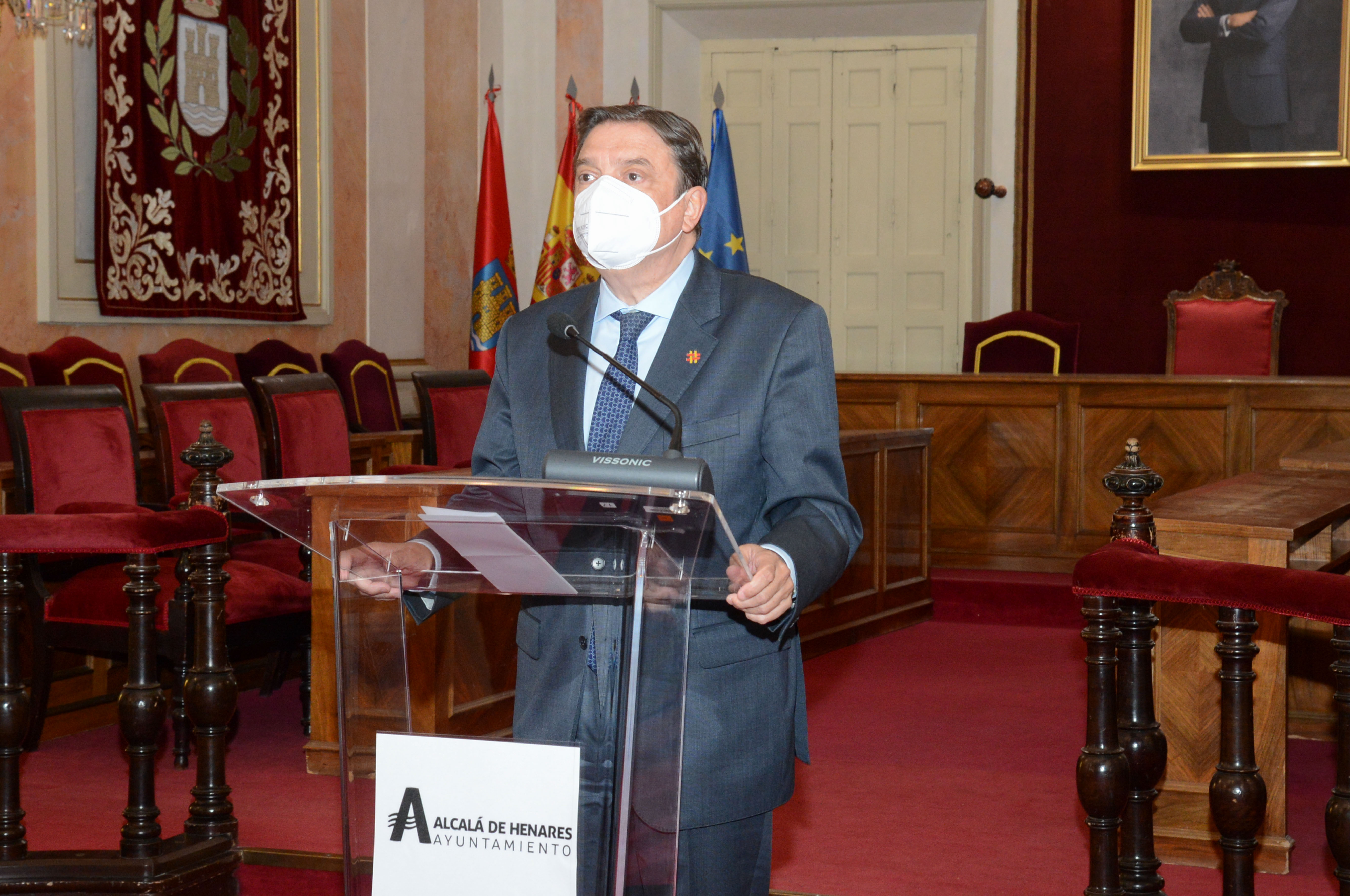Luis Planas ha visitado hoy el Ayuntamiento de Alcalá de Henares, donde ha mantenido un encuentro con su alcalde, Javier Rodríguez Palacios, y la corporación municipal de esta localidad madrileña, de la que el ministro ha destacado su prometedora proyección de futuro, basada en un magnífico legado histórico y cultural.