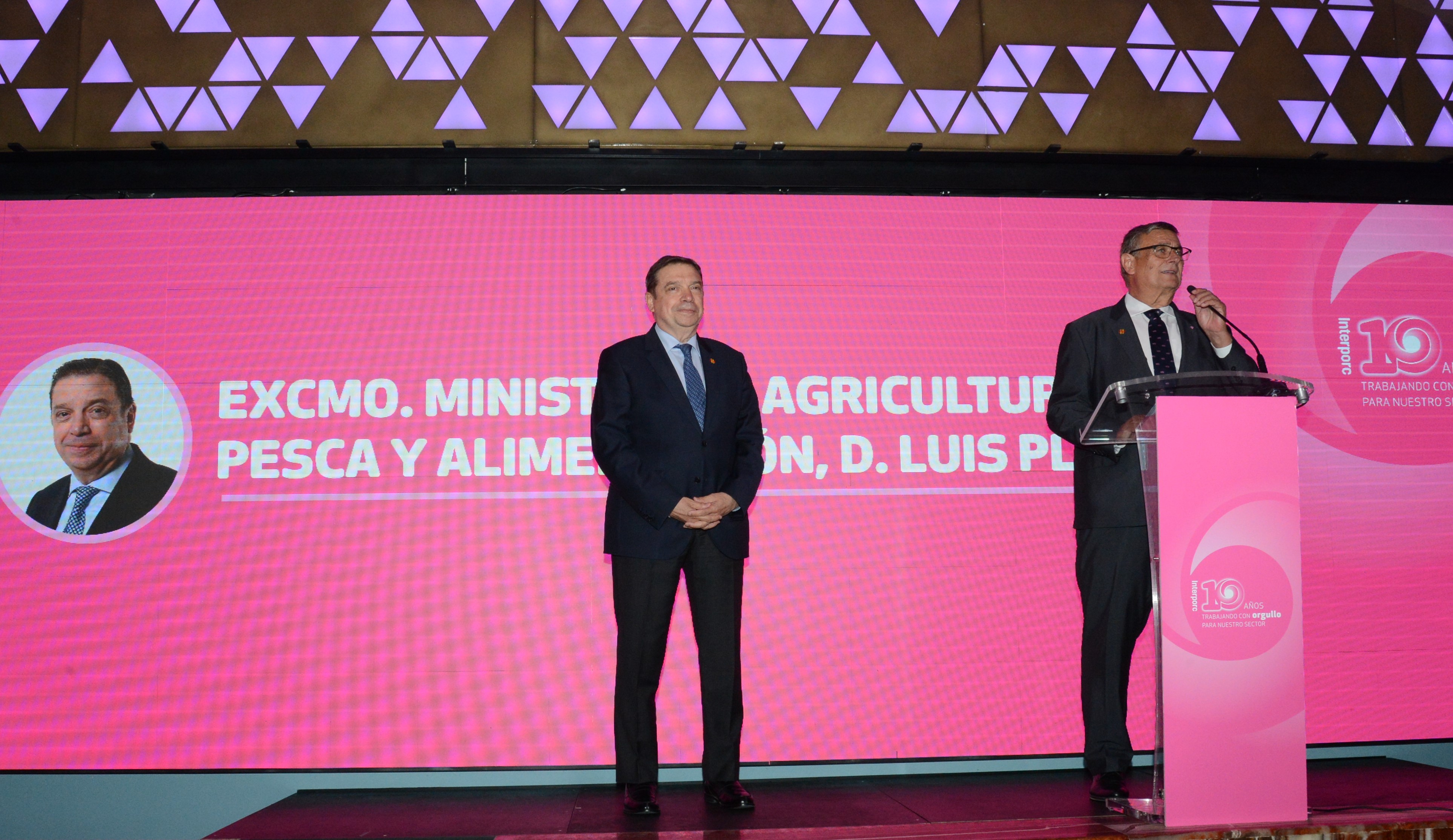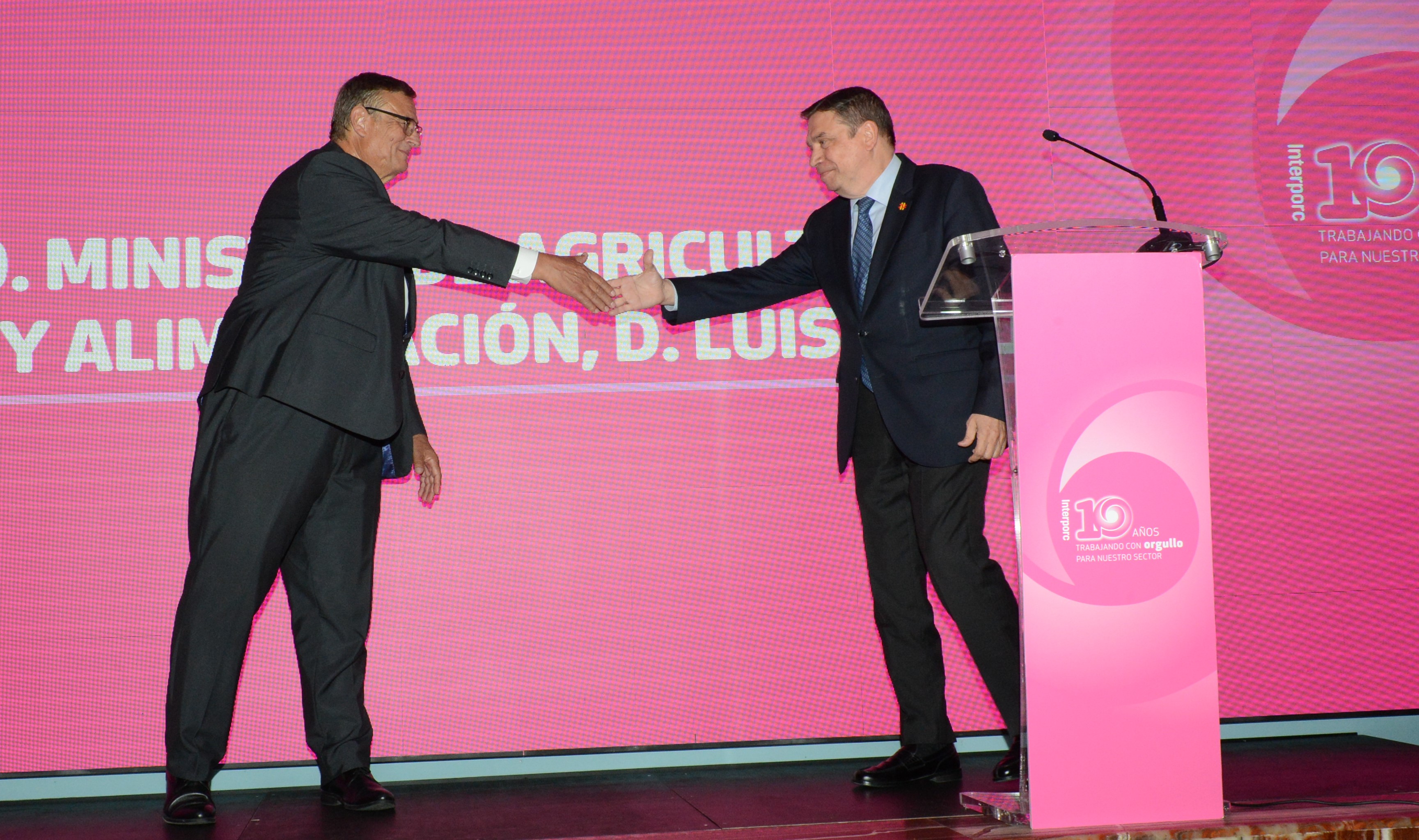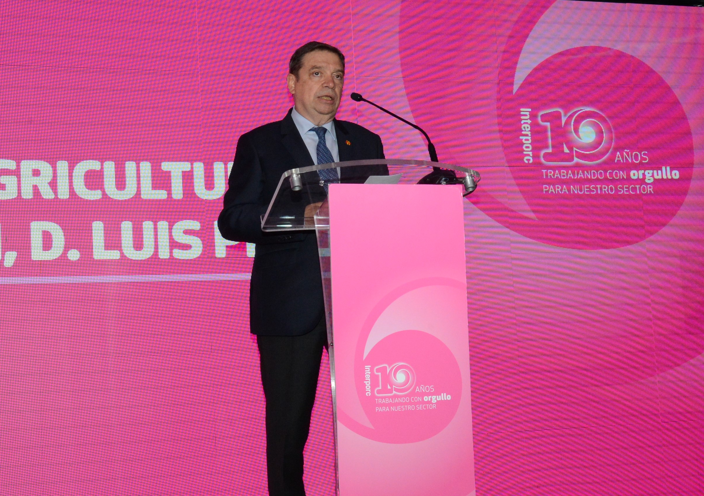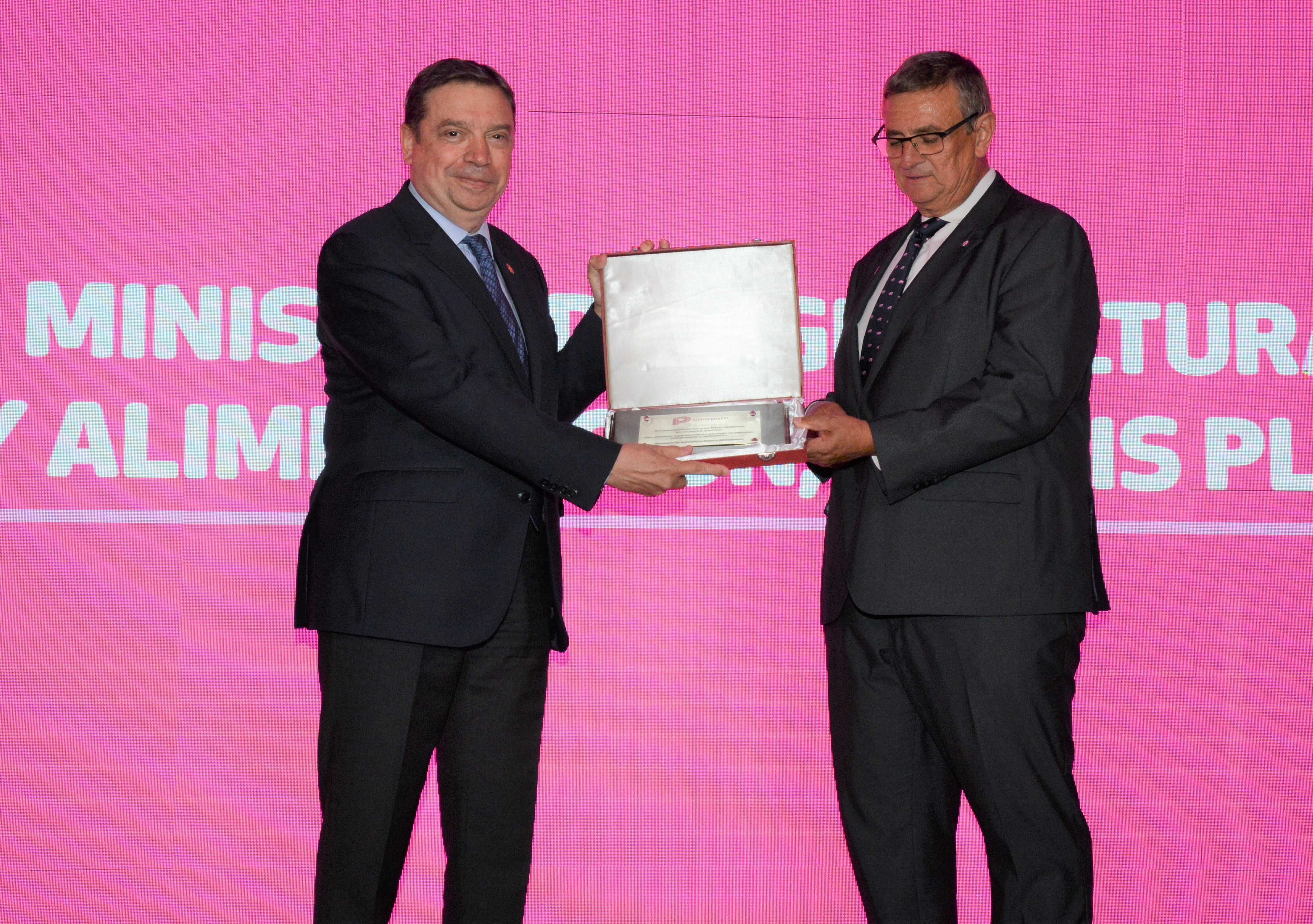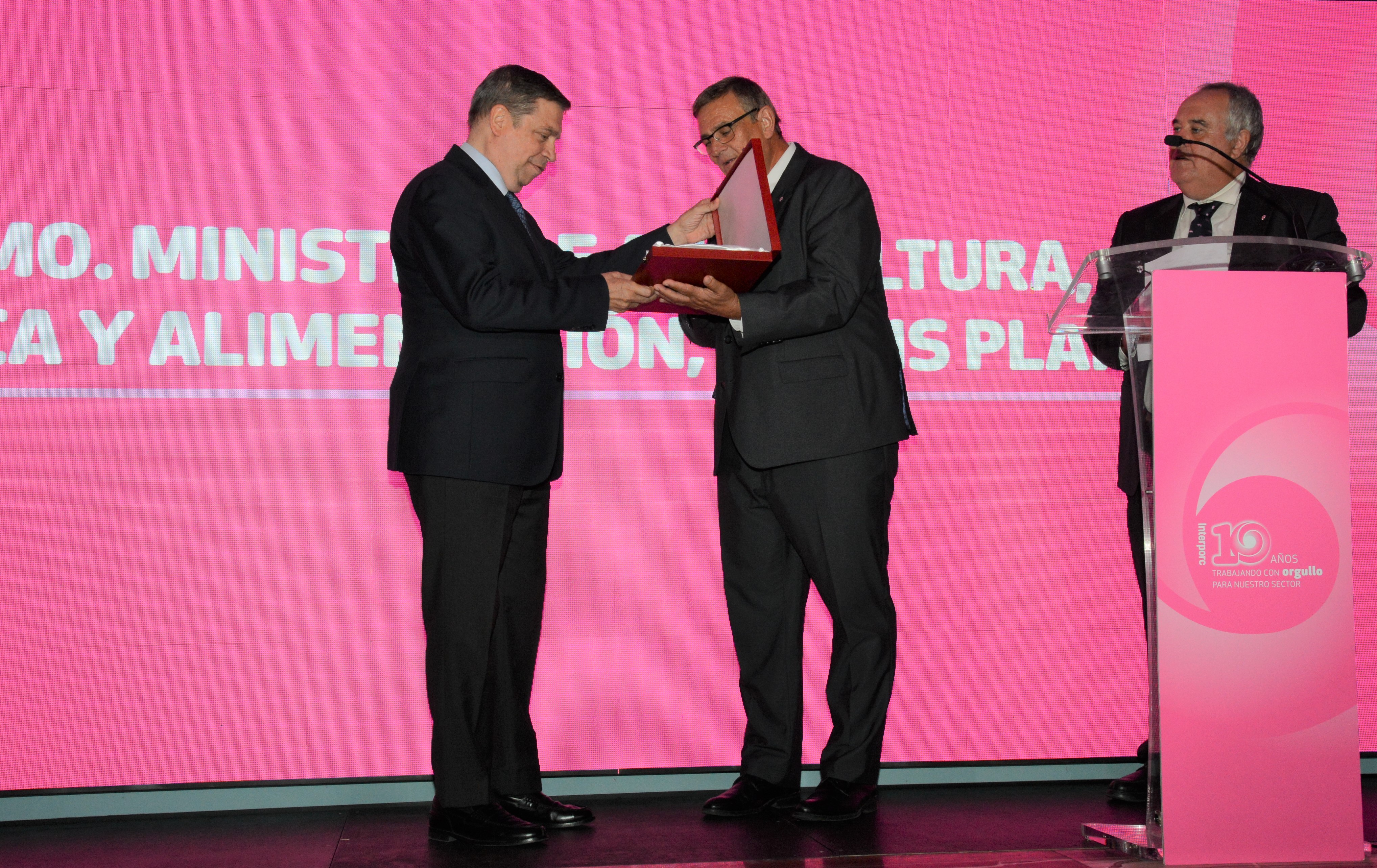 El ministro de Agricultura, Pesca y Alimentación, Luis Planas, ha recibido hoy en Madrid el reconocimiento de la Interprofesional del Porcino de Capa Blanca Español (Interporc), por el apoyo y la defensa del sector. Ha tenido lugar durante el acto de celebración del décimo aniversario de esta entidad.
