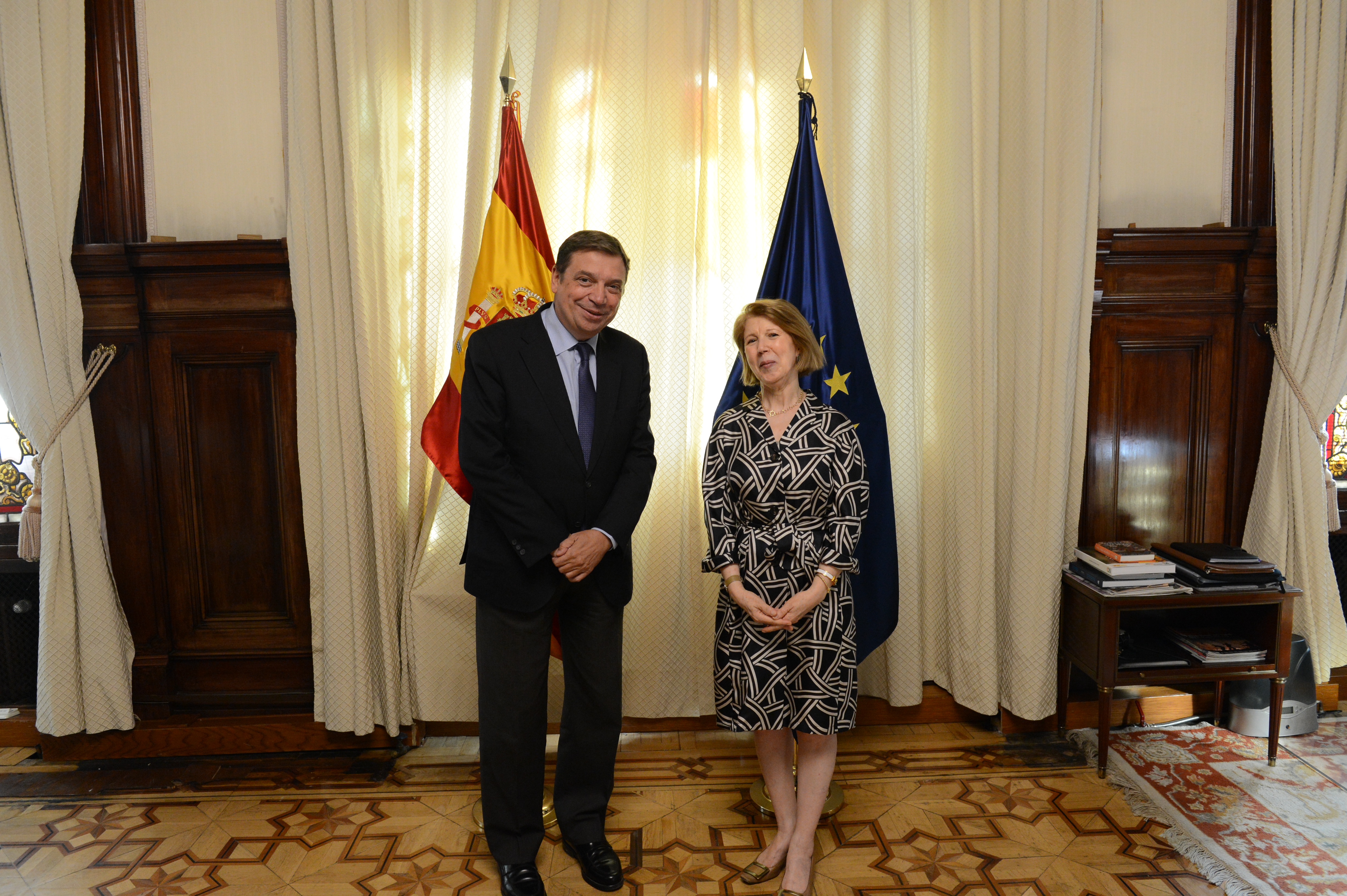 El ministro de Agricultura, Pesca y Alimentación, Luis Planas, se ha reunido hoy, en la sede del Departamento, con la embajadora de Argelia en España, Taous Feroukhi, Un encuentro en el que se ha tratado sobre la lucha contra la desertificación y la sequía, así como sobre la preservación de os recursos hídricos y pesqueros. Durante la reunión se ha abordado igualmente la lucha contra los incendios forestales. .