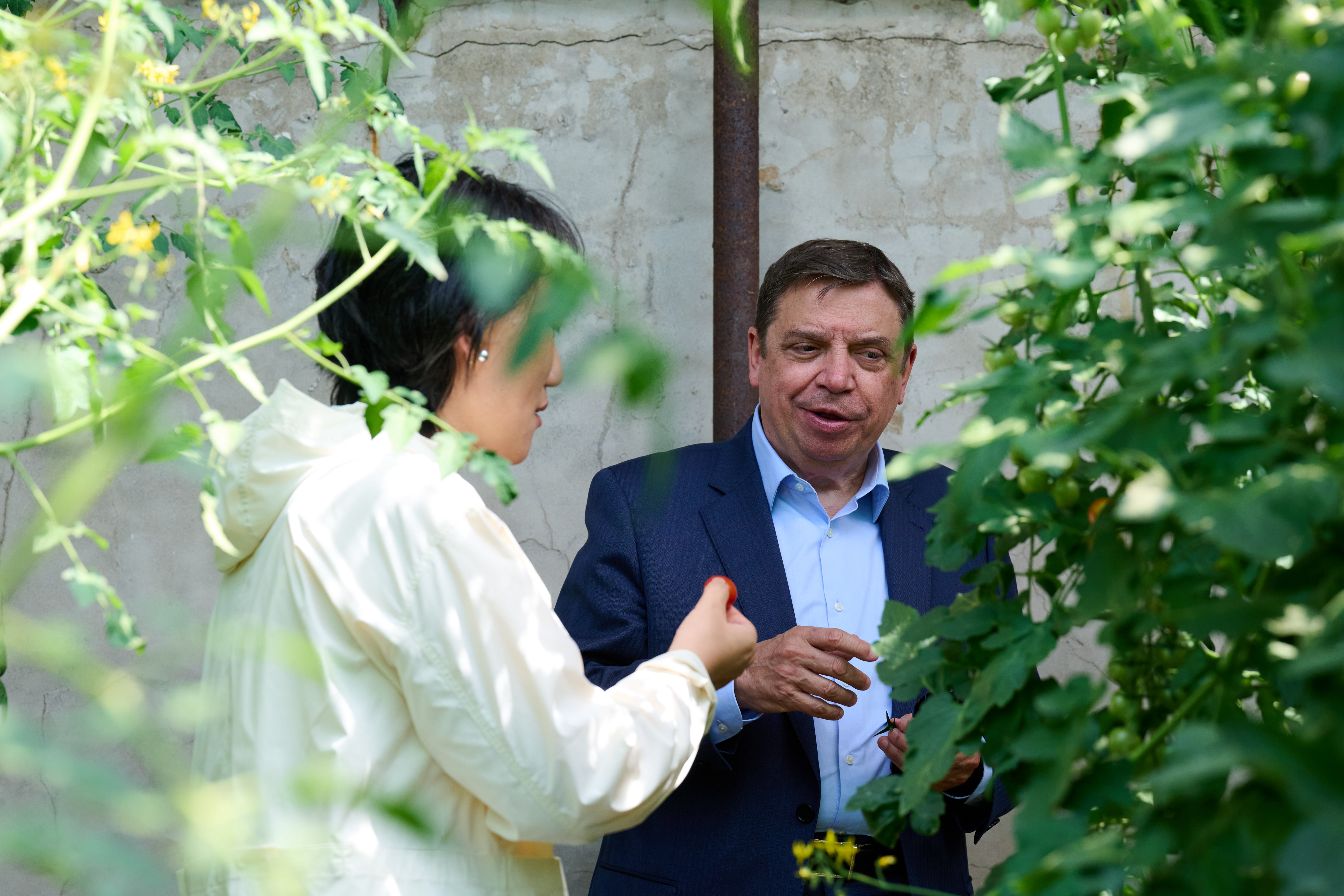 El ministro de Agricultura, Pesca y Alimentación, Luis Planas, ha visitado hoy la explotación Shared Harvest, en el marco del viaje oficial que realiza a la República Popular China, donde ha podido conocer los sistemas de producción ecológica de esta explotación, dedicada al cultivo de frutas y hortalizas y a la producción de huevos y productos cárnicos.